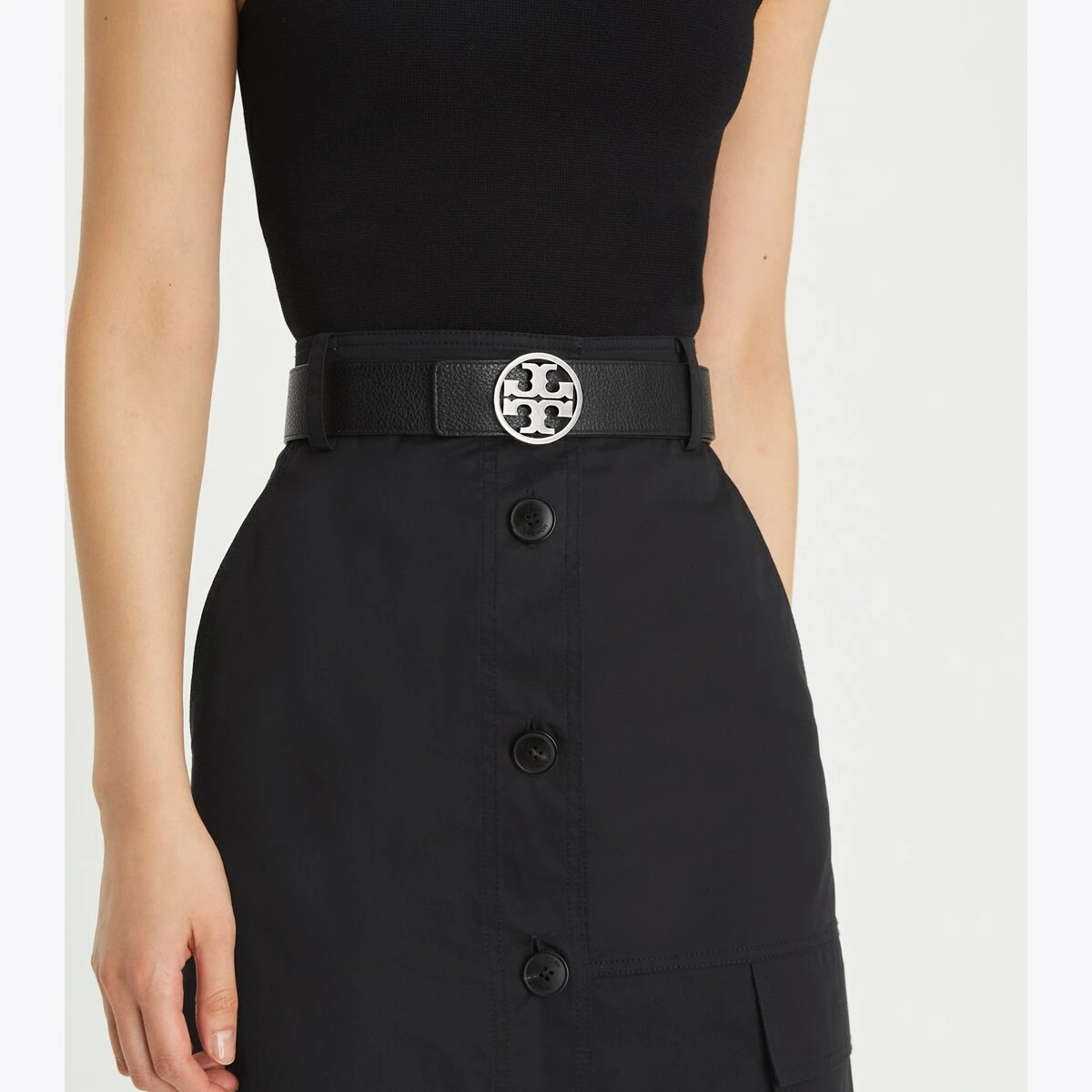 The Miller. Our iconic collection, loved for its timeless style and exceptional design. The reversible belt fastens with a graphic gold Double T. Simply pop off the buckle and flip the strap, then reattach the buckle on the other end — two accessories in one. Highly versatile, wear it dressed up or down, with jeans and pants or cinched over dresses and jackets.