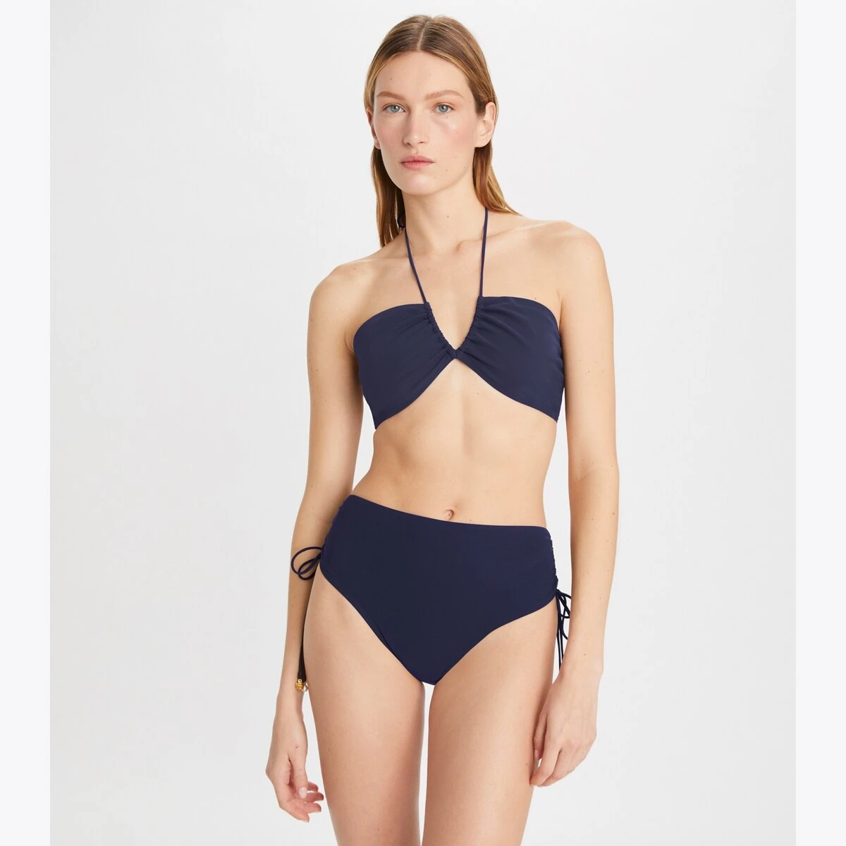 Our retro-style bikini top flatters with a cutout bandeau and adjustable ties that create ruching. Engineered with the highest quality Sensitive® Fabrics by Eurojersey (made in Italy), it offers four-way stretch, an impeccable fit, long lifespan and SPF 50 sun protection.