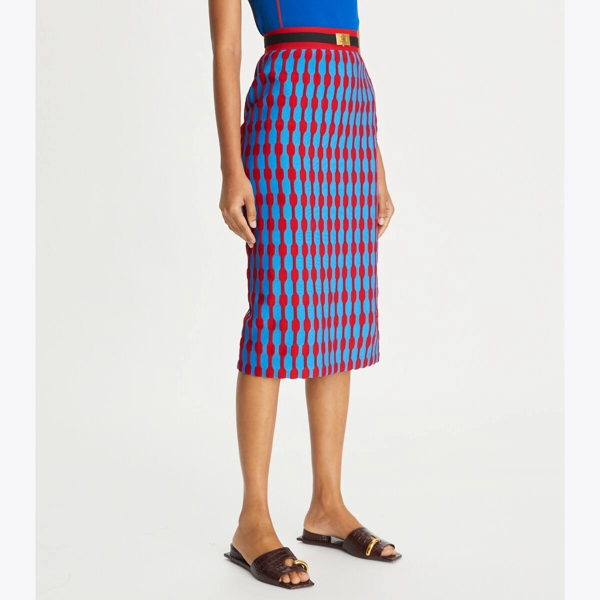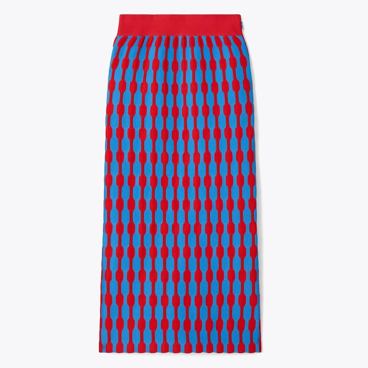 The new collection is an elevated take on American sportswear classics. We explored knit dressing, especially lightweight, tech knit layers that envelop the body without restricting it. Flattering and comfortable, our skirt mixes contrast colors for a graphic effect. It is wrinkle resistant, holds its shape and has just the right amount of give. Create a collage of color and pattern when you pair it with the jacquard zip polo, cinched at the waist with a belt.