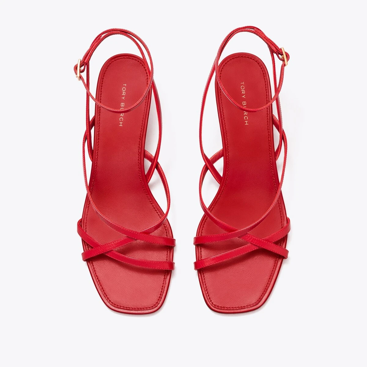 The Capri Low Heel Sandal combines ’90s minimalism with a multi-strap design that frames and flatters the foot. An elegant ankle strap is finished with a metal buckle.