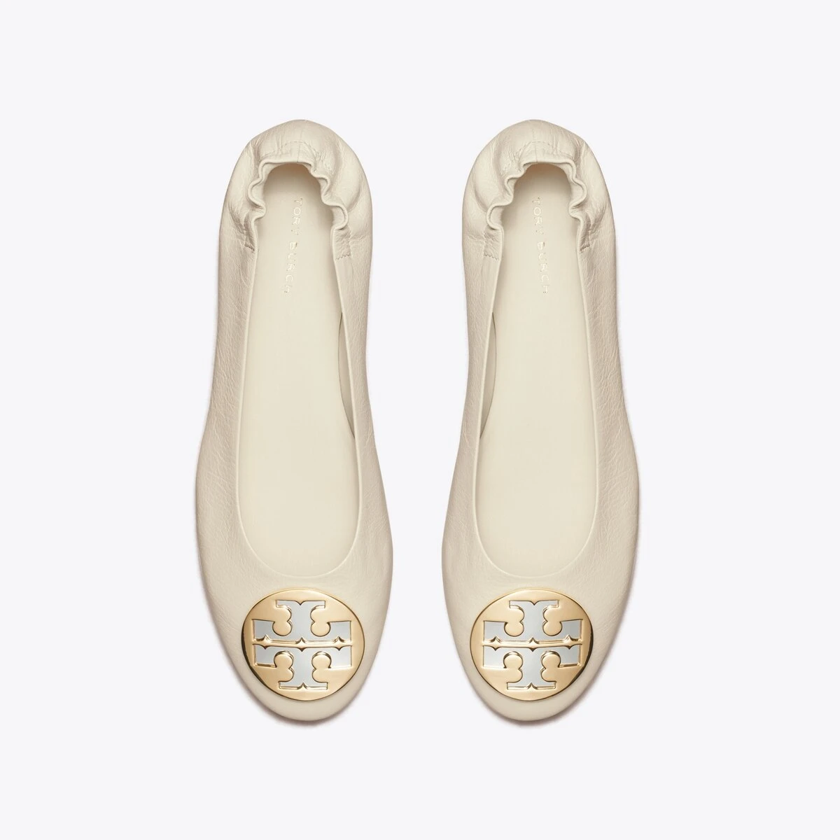 A classic, reimagined. Named for American designer Claire McCardell who introduced ballet flats in the 1940s and empowered women by breaking fashion rules. The new Claire Ballet Flat pairs modern elements — a high vamp and metal hardware — with discreet details designed for superior comfort — an extra-padded footbed and rubber pods. A ruched heel adds a gentle grip, advancing the long-lasting wearability of our elegant flat.