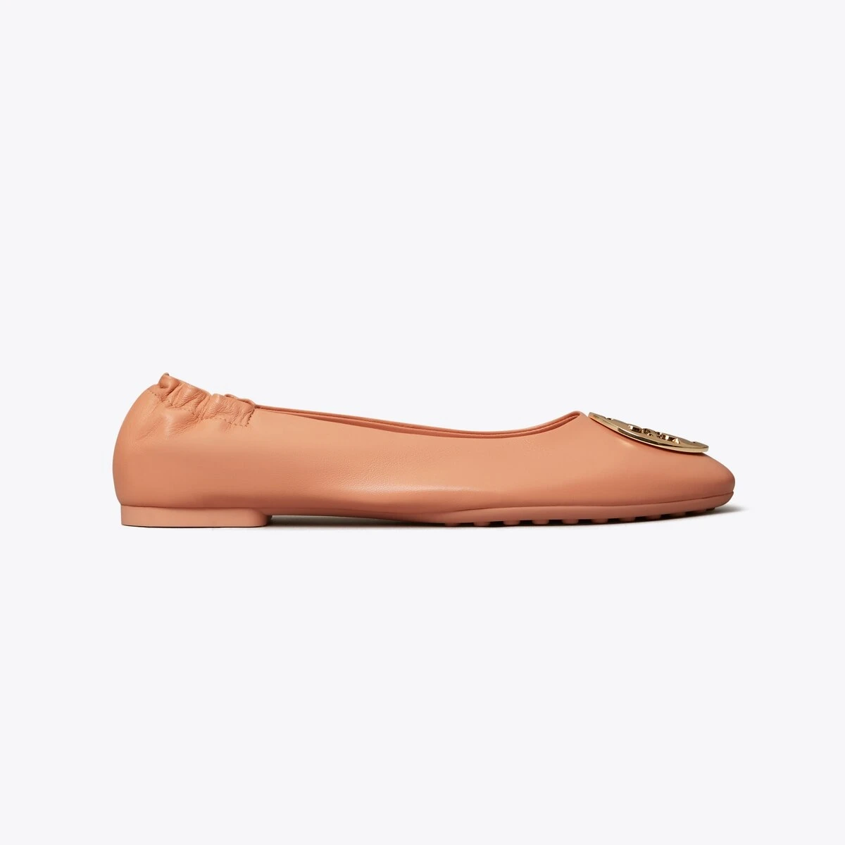 A classic, reimagined. Named for American designer Claire McCardell who introduced ballet flats in the 1940s and empowered women by breaking fashion rules. The new Claire Ballet Flat pairs modern elements — a high vamp and metal hardware — with discreet details designed for superior comfort — an extra-padded footbed and rubber pods. A ruched heel adds a gentle grip, advancing the long-lasting wearability of our elegant flat.
