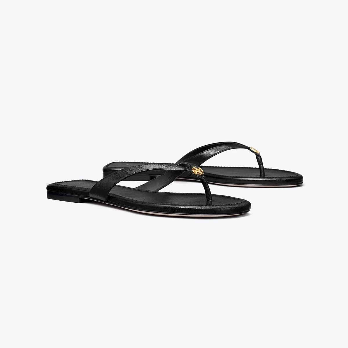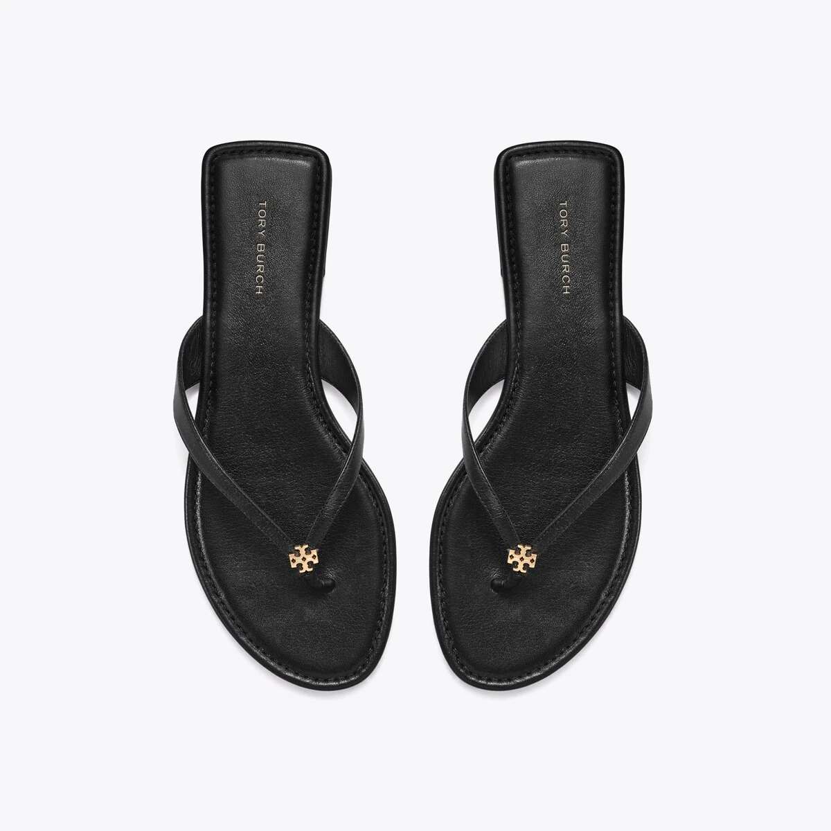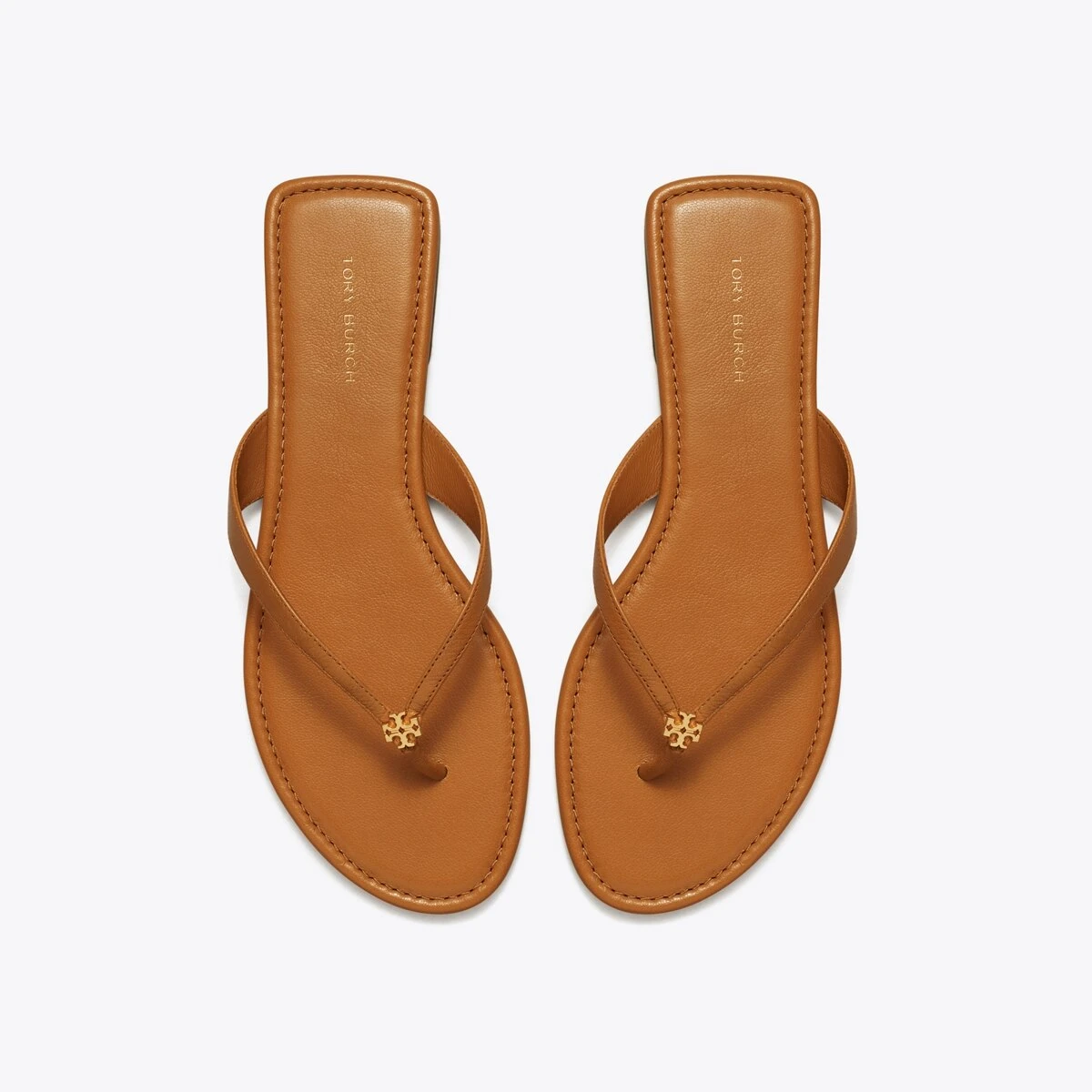 The warm-weather must have is elevated in rich leather with slim straps and a brass logo charm. A cushioned footbed ensures long-lasting comfort.