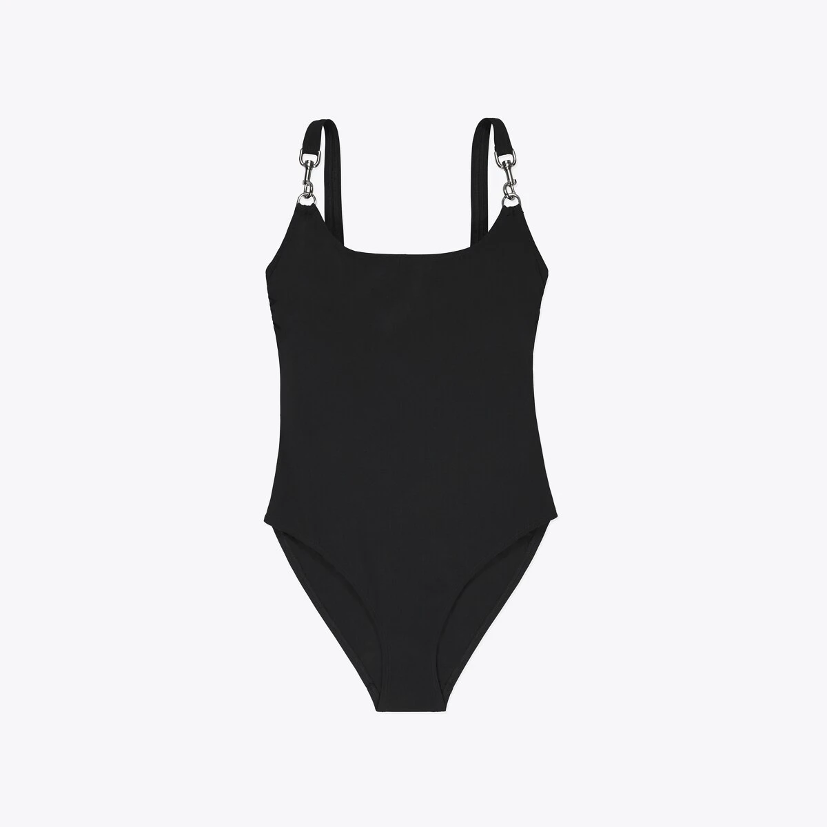 Featuring the perfect hit of hardware, the Clip Tank Swimsuit is one of Tory’s vacation favorites. Made of the highest-quality Sensitive® Fabrics by Eurojersey (a world-renowned source from Italy), which feature four-way stretch, impeccable fit, long lifespan and SPF 50 sun protection.
