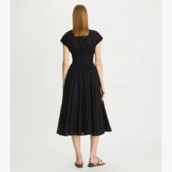 The new collection looks forward by reflecting on the past, experimenting with transparency and form to evolve classic styles. Chic and comfortable, our cotton eyelet dress is cut from delicate broderie anglaise. Gentle pleats fall to a voluminous midi-length skirt that moves beautifully. Wear it with strappy sandals now and heels and a cardigan later.