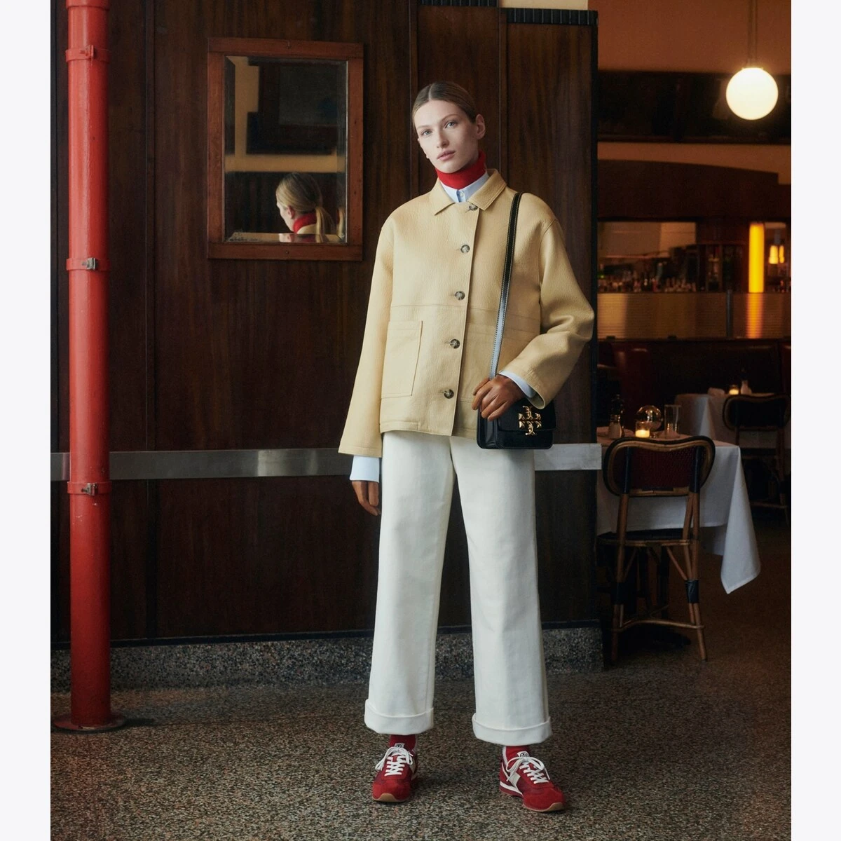 Tory reinterprets American luxury, channeled through the attitude of classic New York. There is a focus on timeless pieces that transcend the seasons, grounded in simplicity and ease. With its exaggerated collar and cuffs, our crisp cotton poplin blouse is a nod to Seventies style. Great on its own or layered under a relaxed jacket or cardigan.