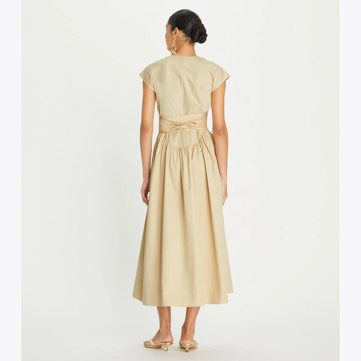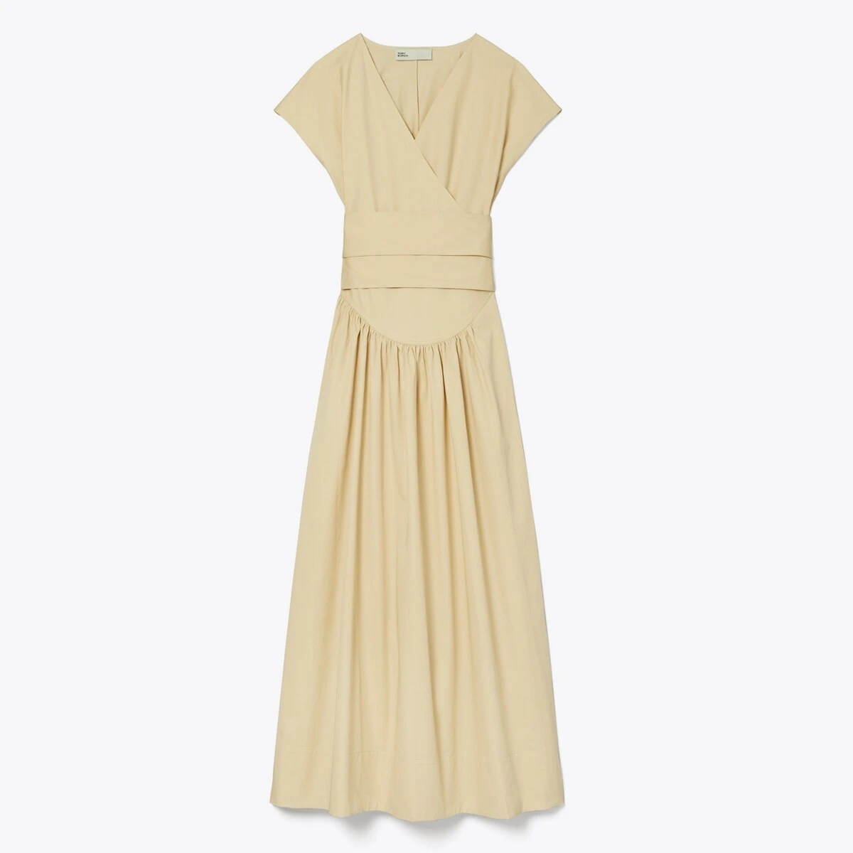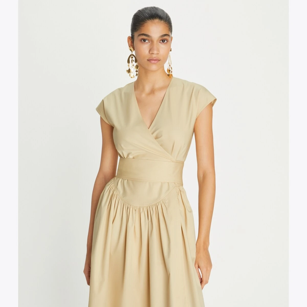 This feminine silhouette creates a flattering shape with a wrap bodice and tie belt that cinches the waist, while a softly pleated skirt delivers elegant movement. Side-seam pockets make this dress ultra-versatile.