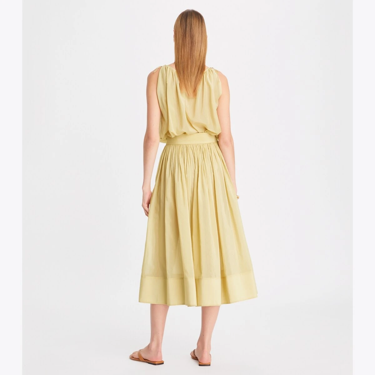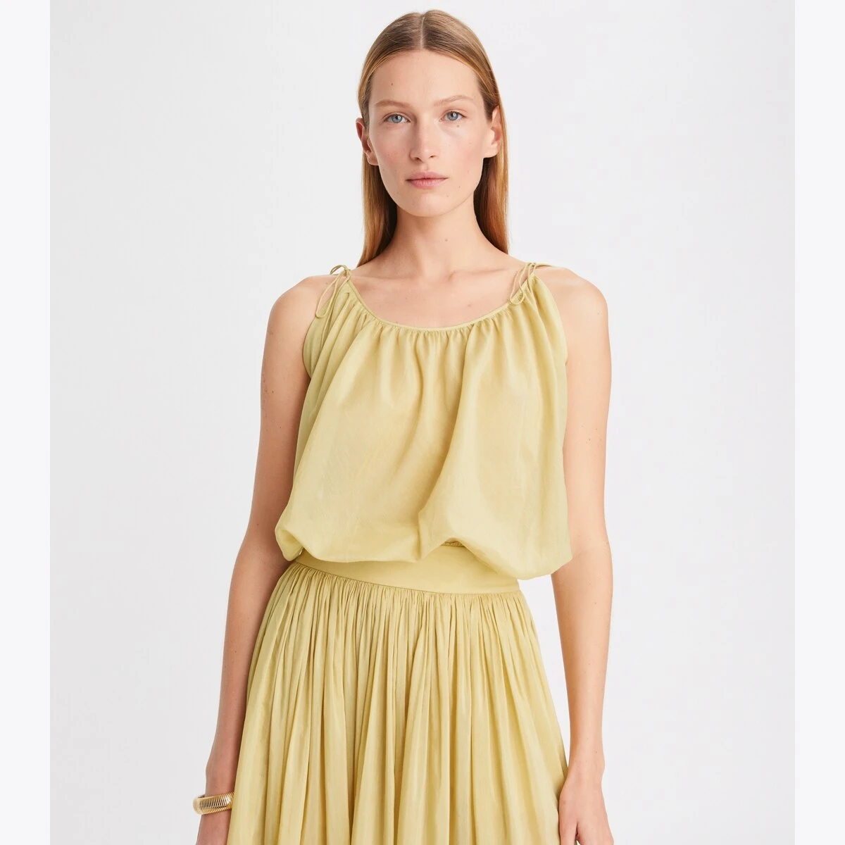 Made from cotton and silk, our beach top is lightweight and comfortable, with relaxed volume, subtle pleats and a flattering neckline finished with adjustable shoulder ties. Wear it as a cover-up over a swimsuit or with relaxed pants for warm-weather getaways.