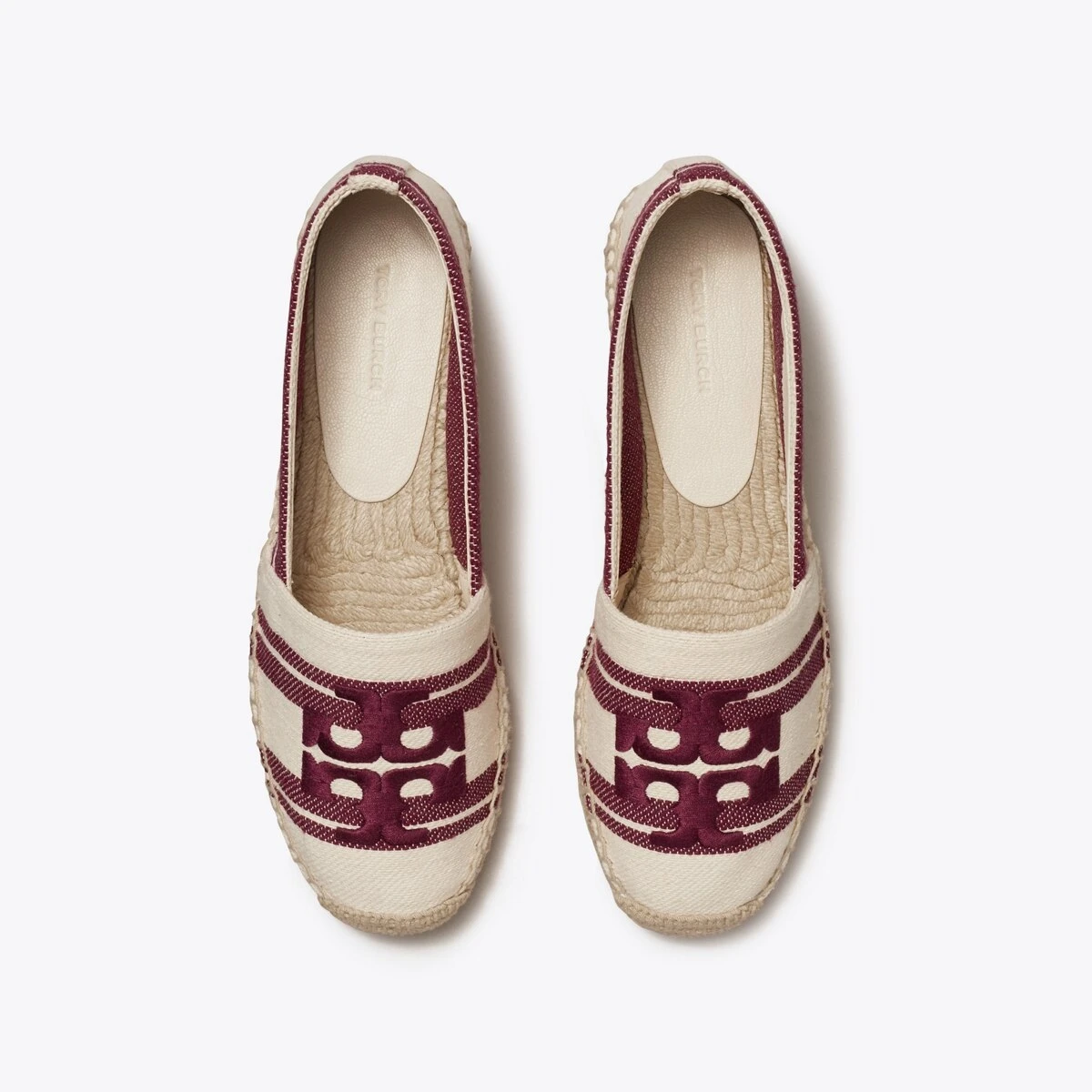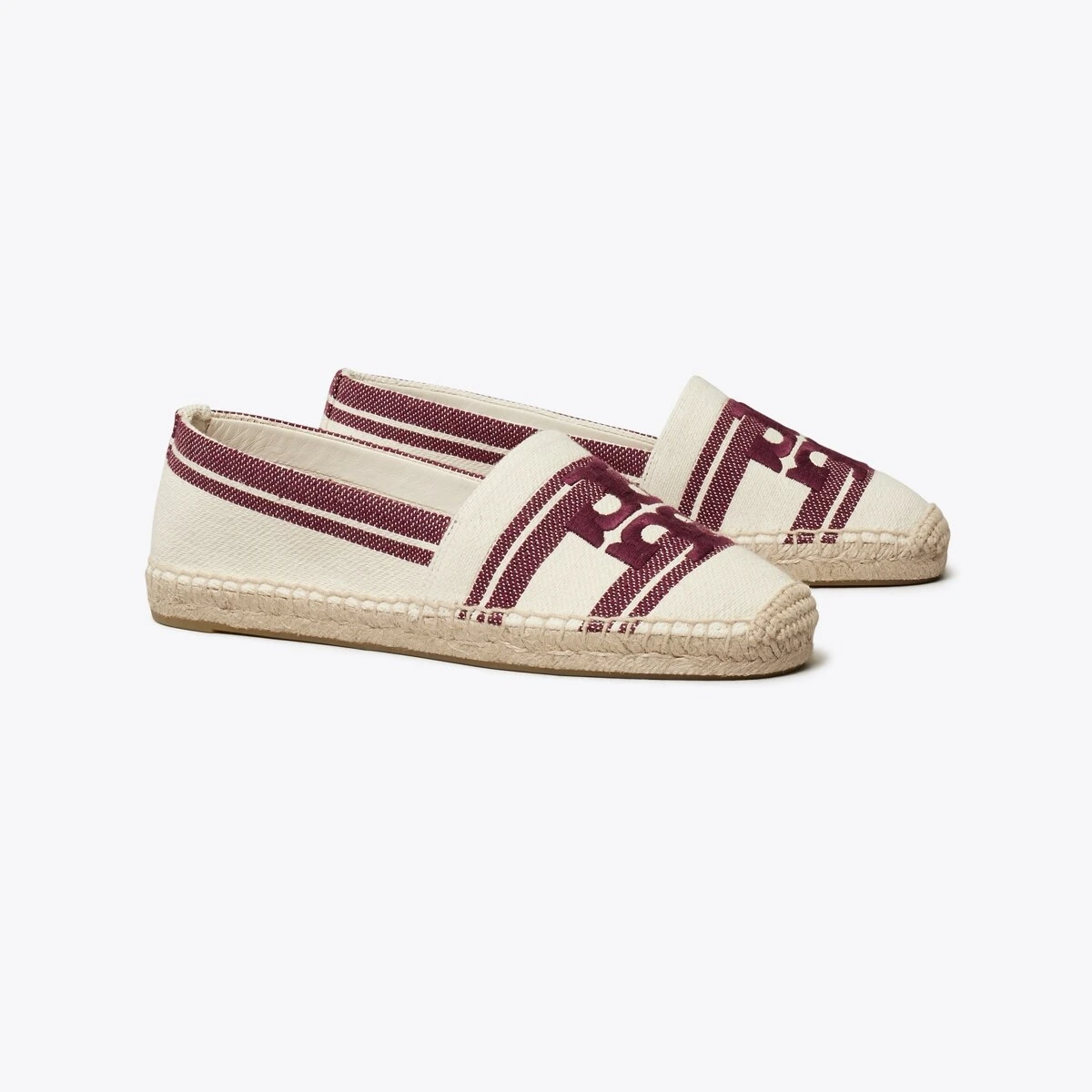 Meticulously crafted in Italian striped jacquard, this espadrille features an embroidered Double T and a jute platform sole stitched by hand.
