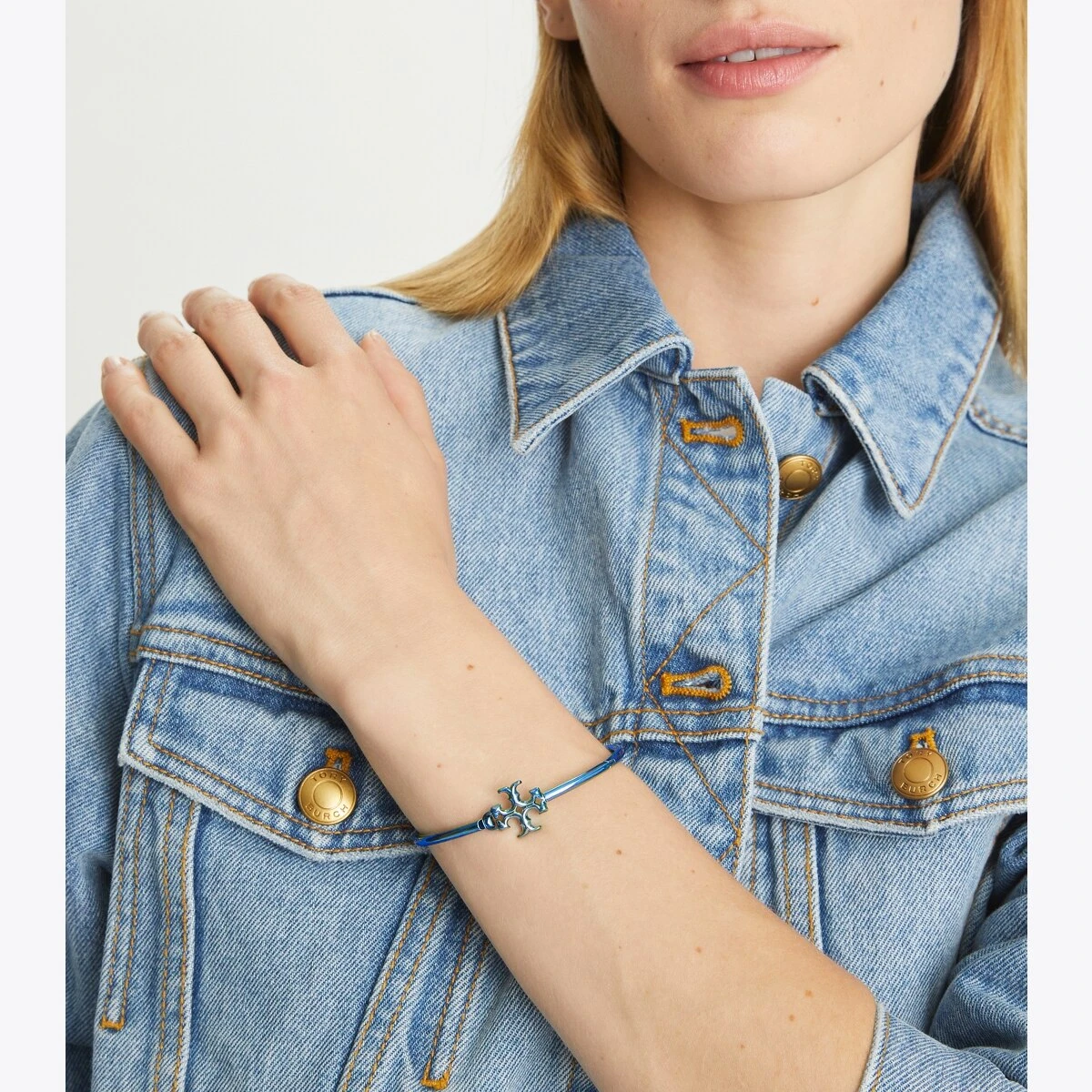 Our iconic Double T is transformed into graphic hardware on the Eleanor Cuff — a slim wire bangle in smooth enamel.