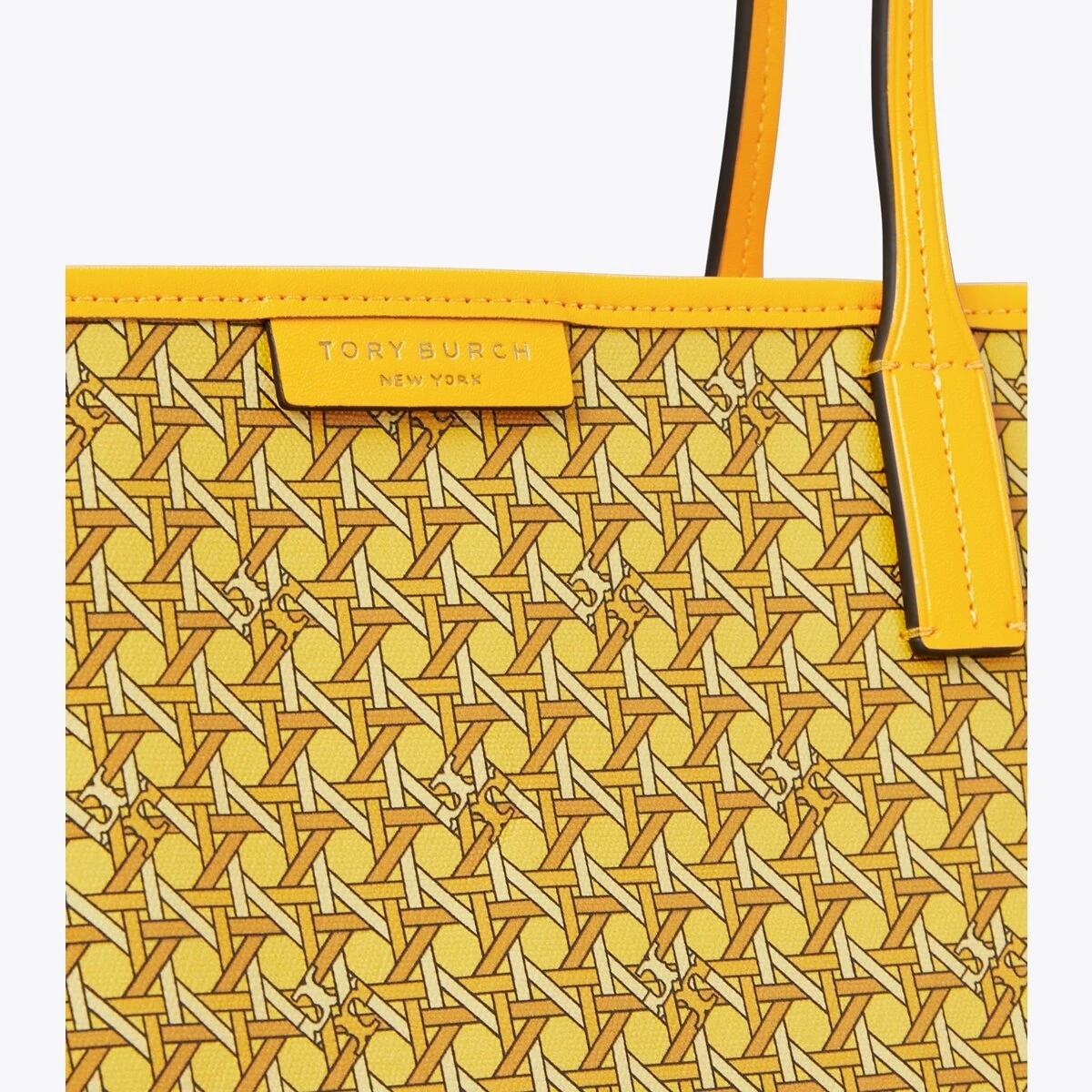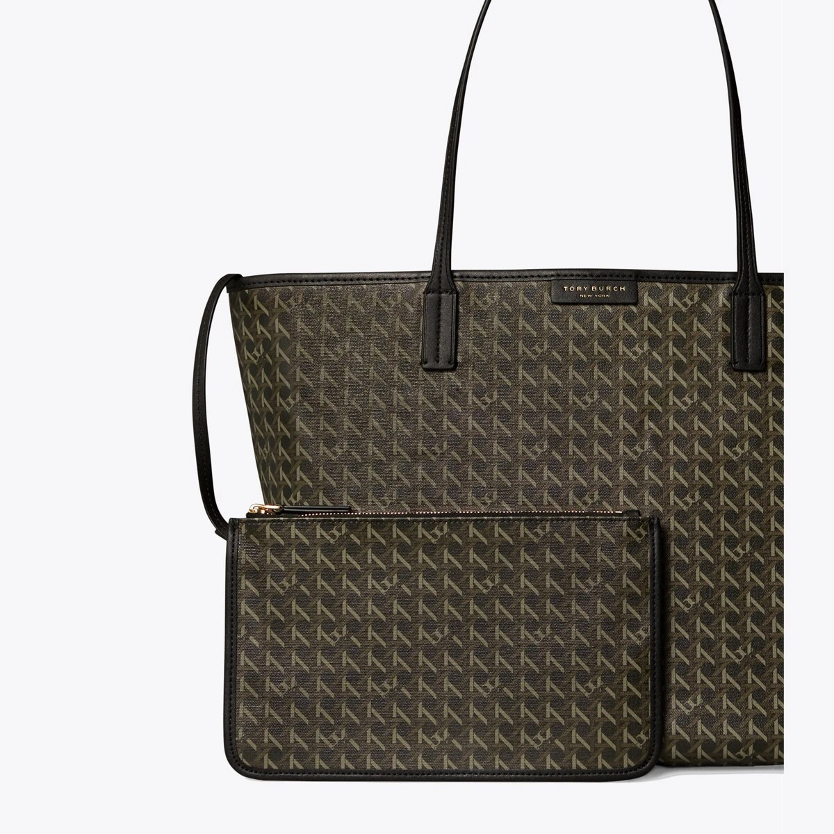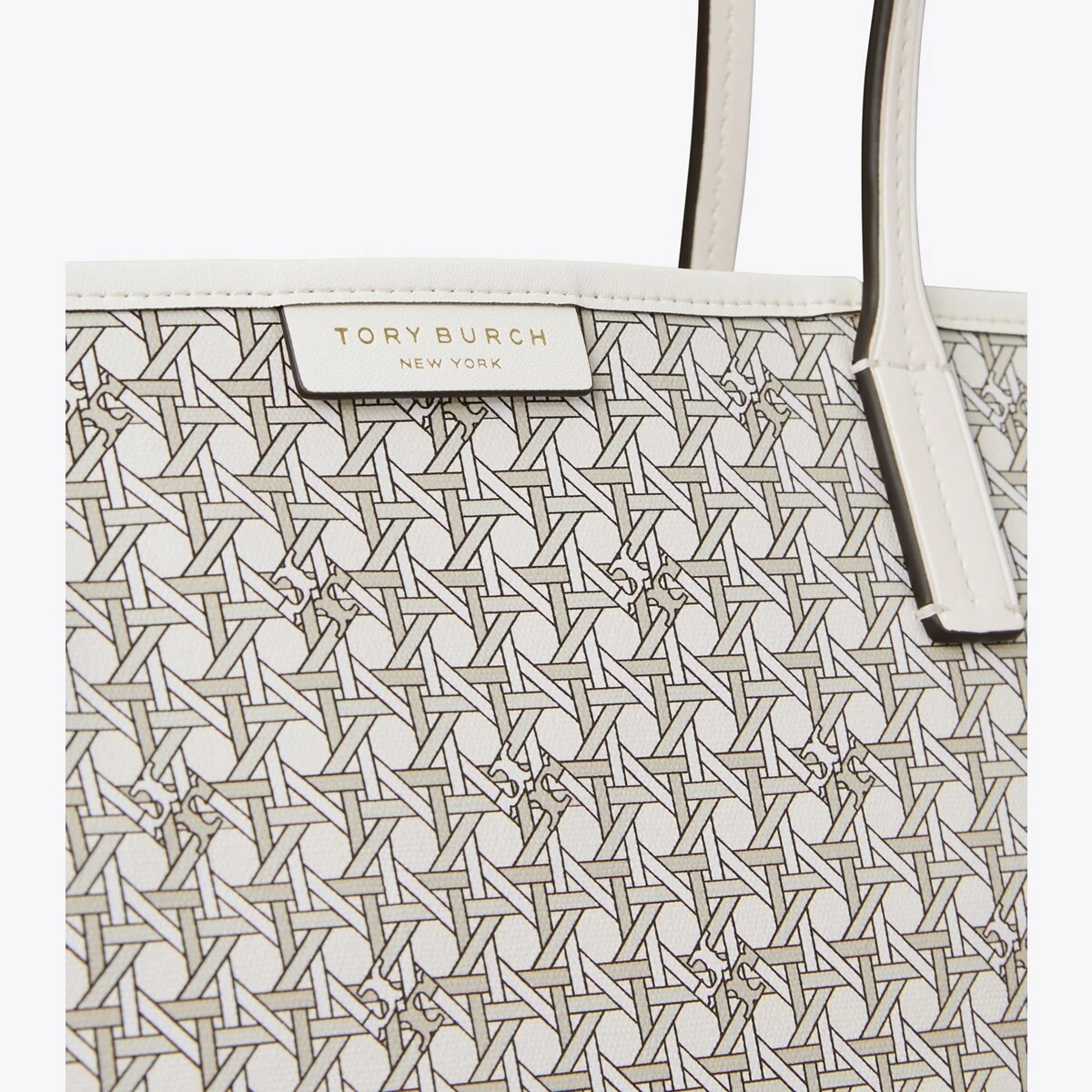 Ready for anything. A stylish tote that is supremely functional. Lightweight and durable in water-resistant coated canvas, our new Ever-Ready Tote has a secure zipped top and comes with a matching pouch. Slim straps are long enough to comfortably sit over the shoulder. Our iconic basketweave print is inspired by Tory’s longtime fascination with basketry: Straw baskets in her Valley Forge home, woven bags found on travels, the caning of Parisian café chairs. The micro motif is both a statement and neutral.