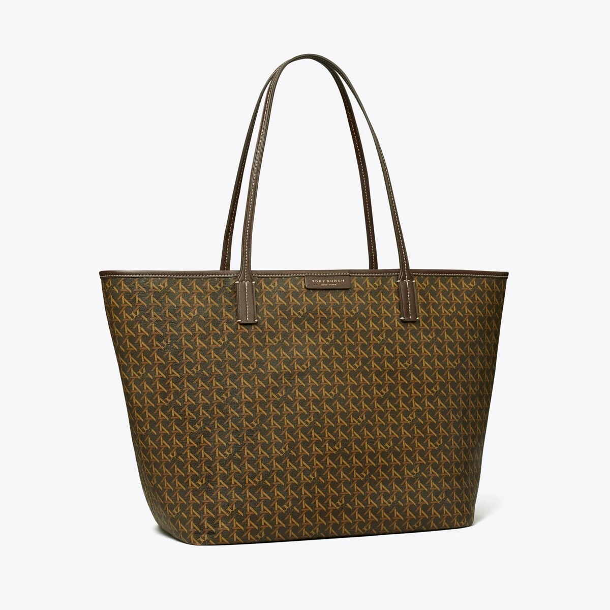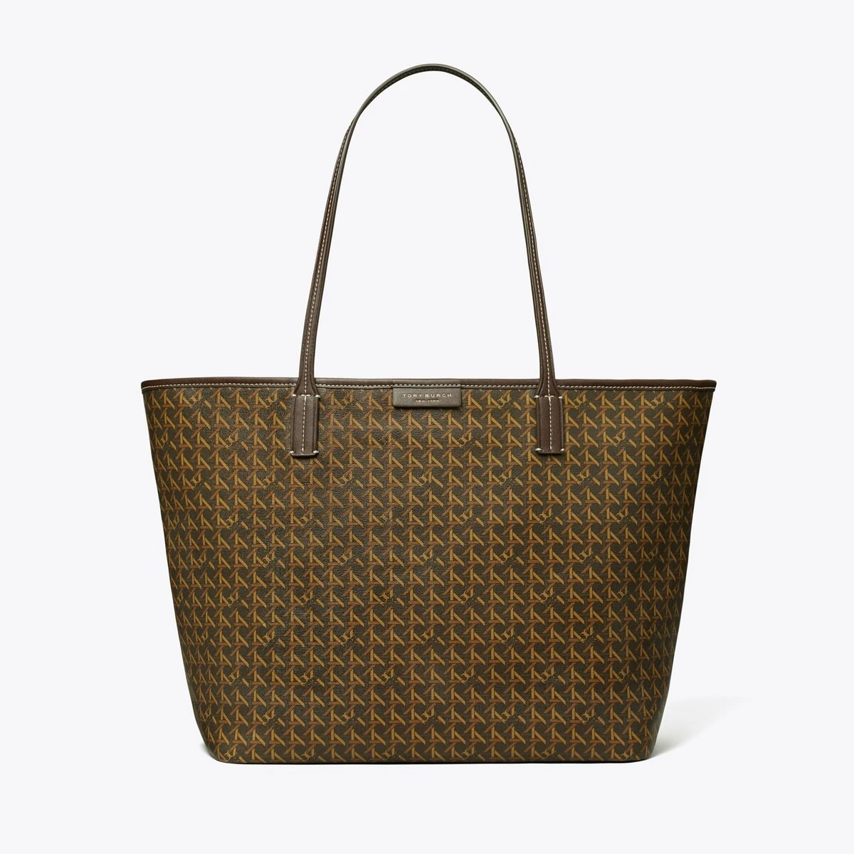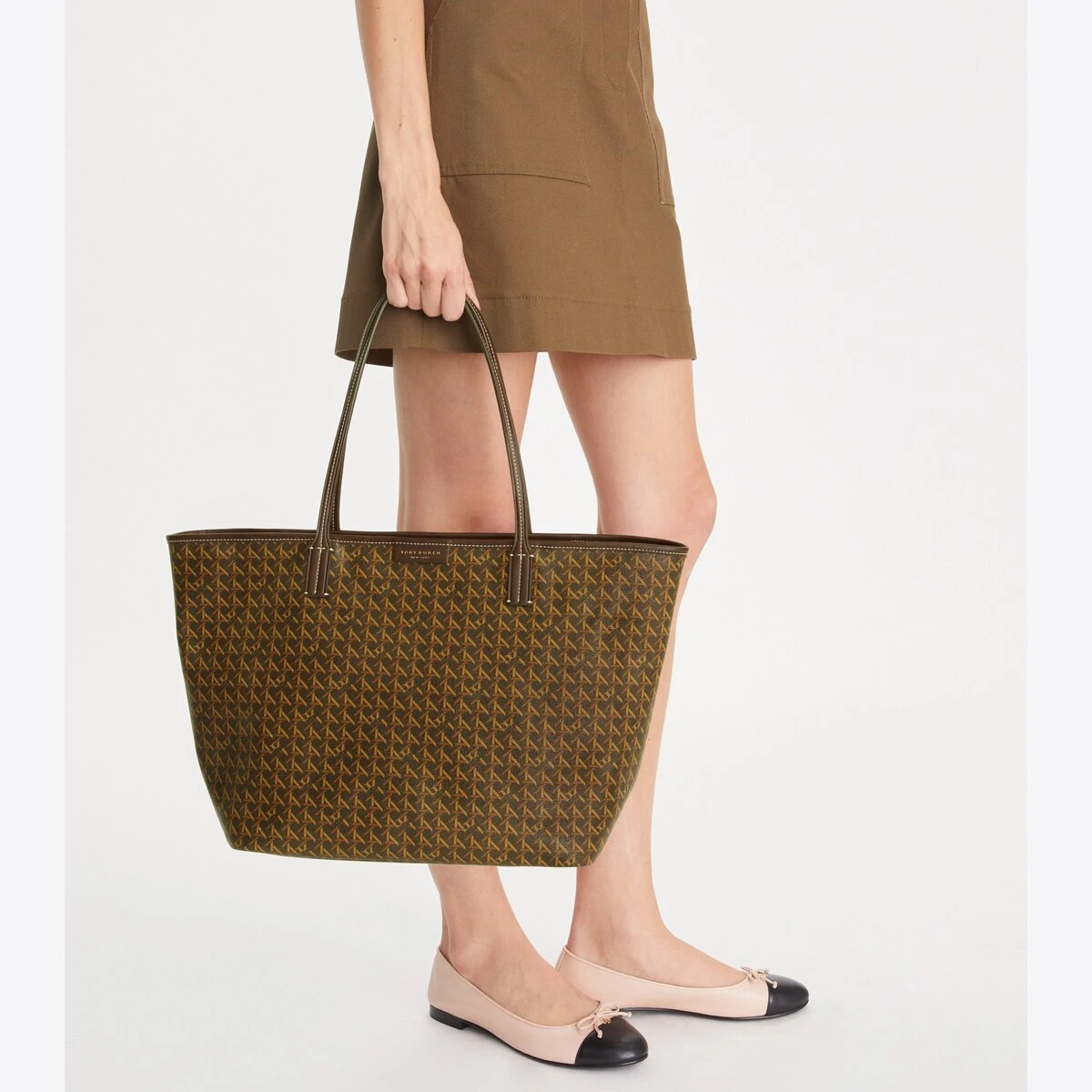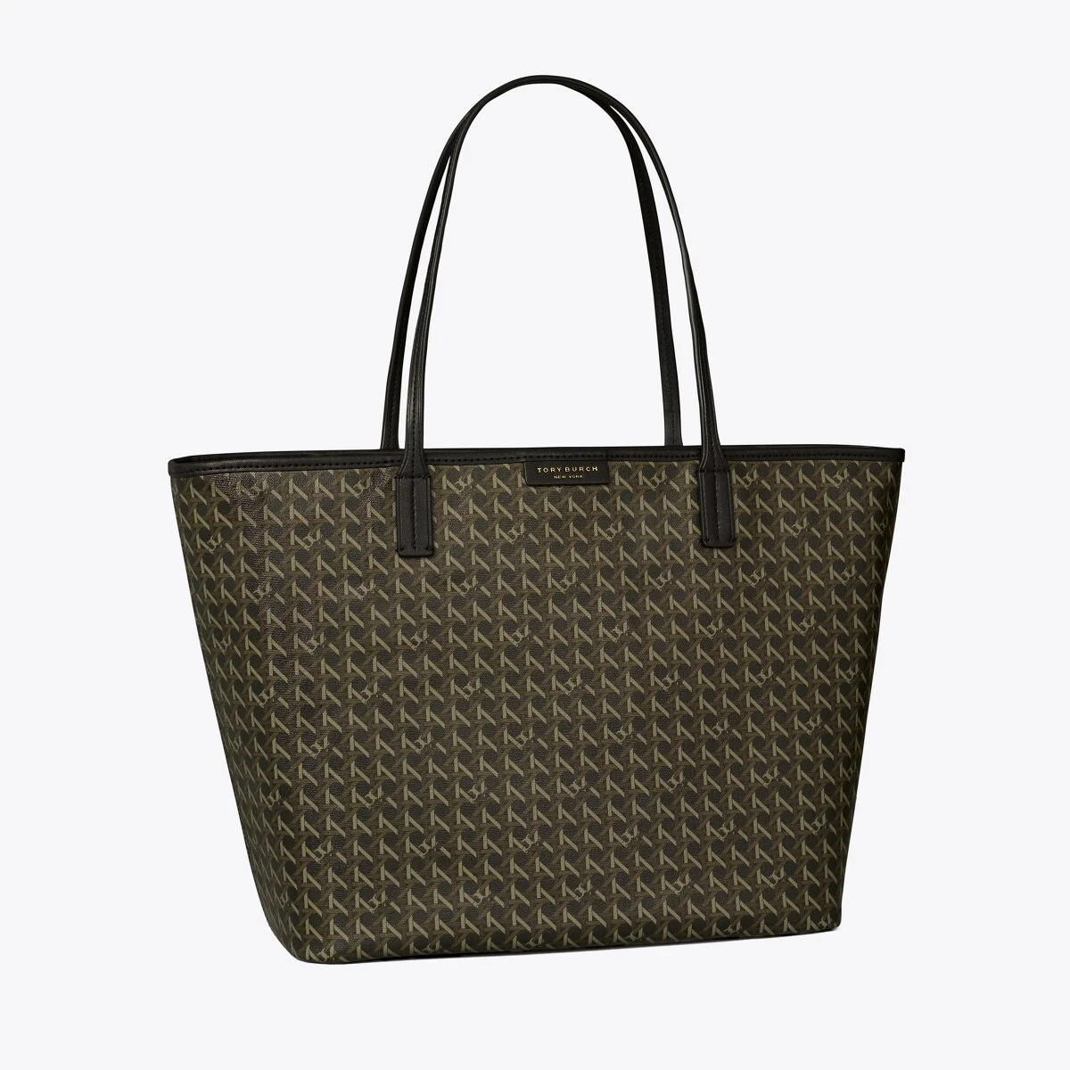 Ready for anything. A stylish tote that is supremely functional. Lightweight and durable in water-resistant coated canvas, our new Ever-Ready Tote has a secure zipped top and comes with a matching pouch. Slim straps are long enough to comfortably sit over the shoulder. Our iconic basketweave print is inspired by Tory’s longtime fascination with basketry: Straw baskets in her Valley Forge home, woven bags found on travels, the caning of Parisian café chairs. The micro motif is both a statement and neutral.