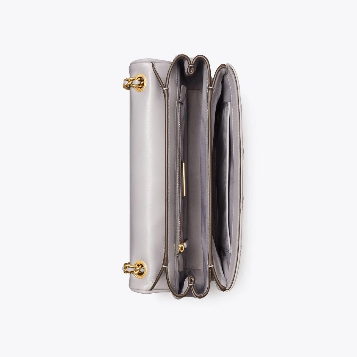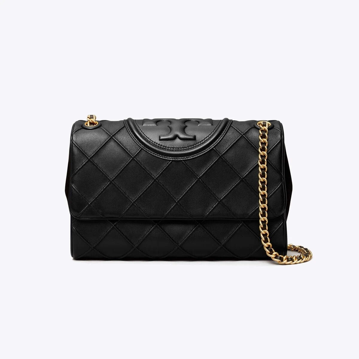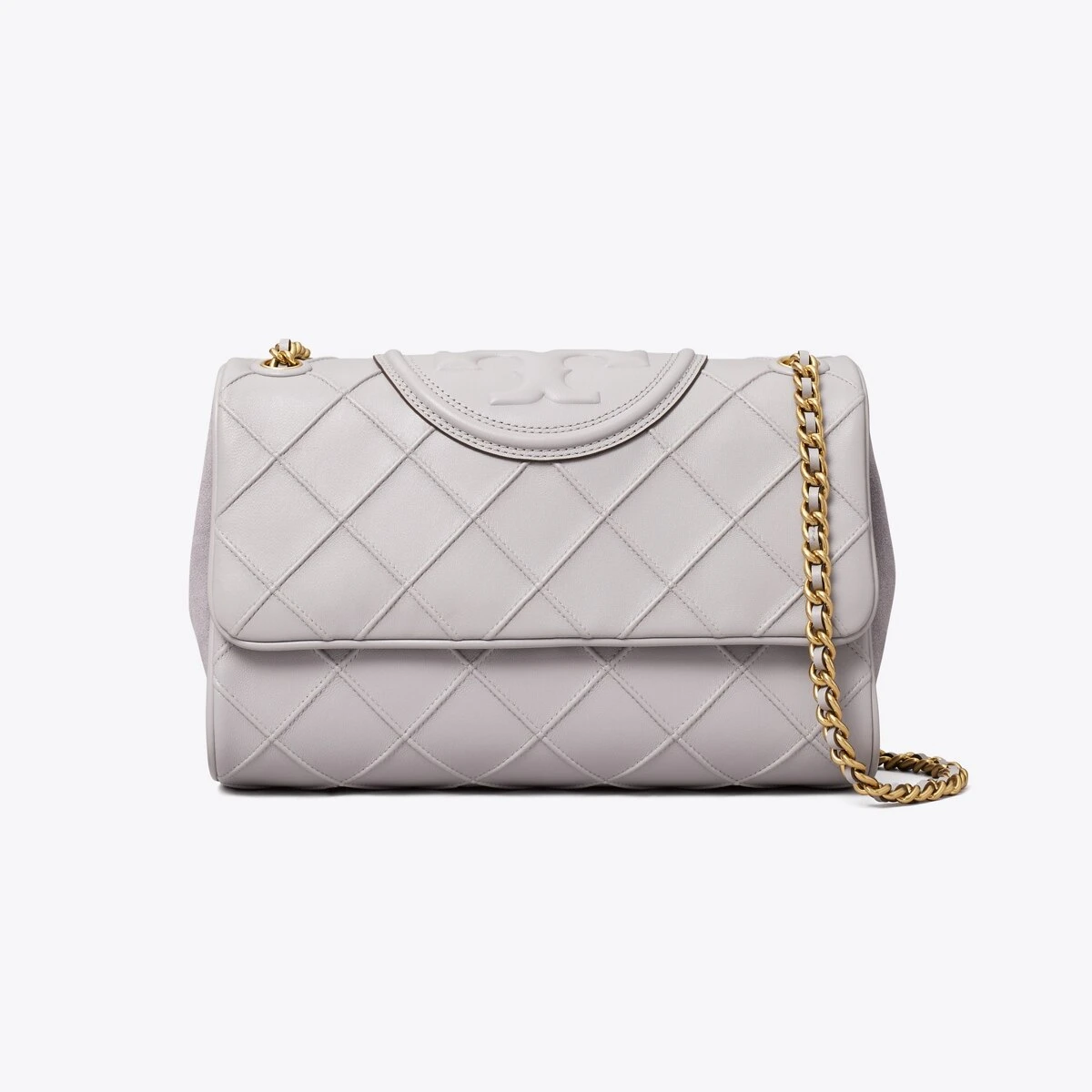 Enduring glamour. The new Fleming Soft Convertible Shoulder Bag is updated with pintucks in a diamond pattern and the softest leather. The feminine silhouette is sealed with an oversized bombé Double T. Braided with brushed chain, the strap can be worn long or short.