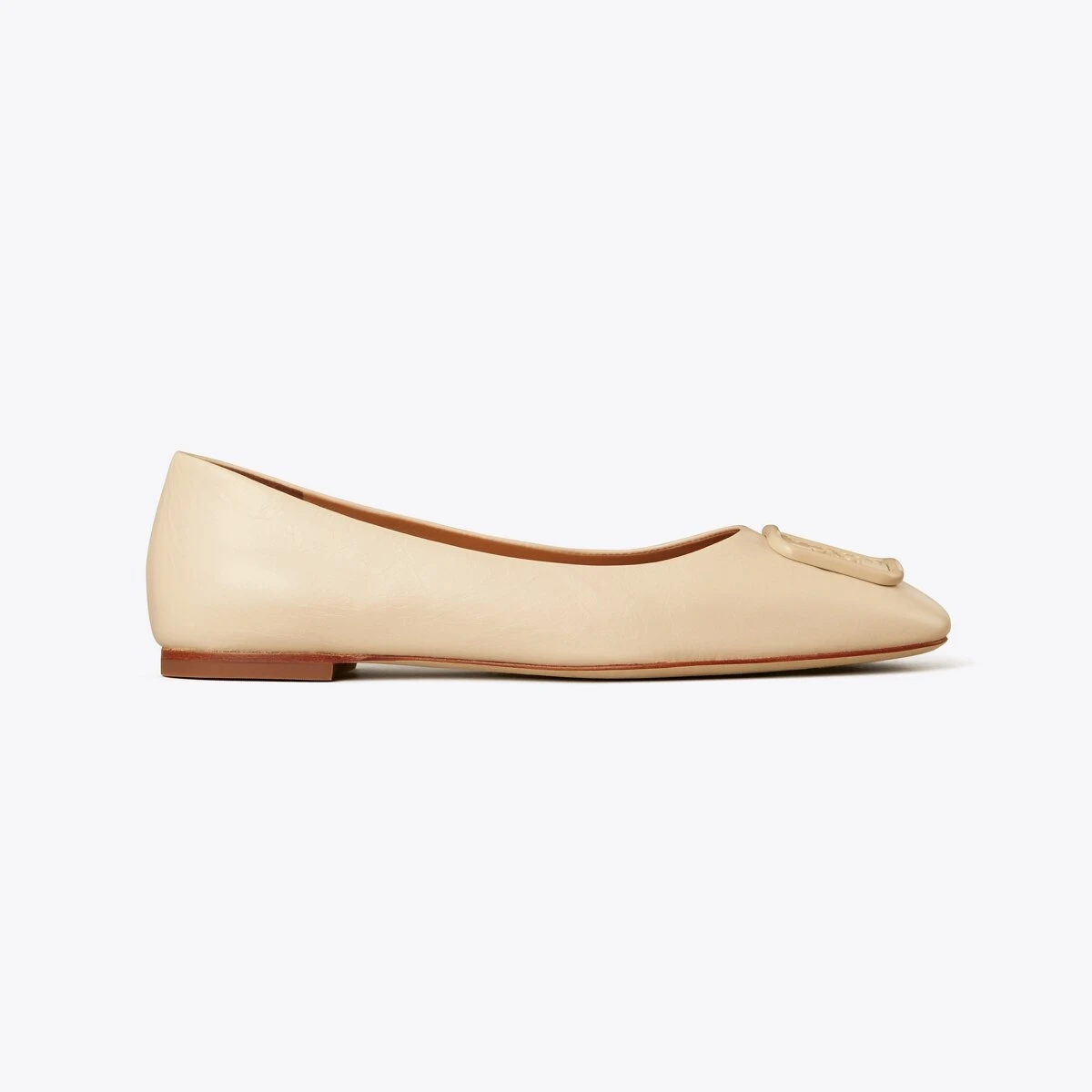 A square toe and square hardware meet luxurious leather and brass. The Georgia Ballet Flat is designed with a flattering high vamp and a cushioned insole.