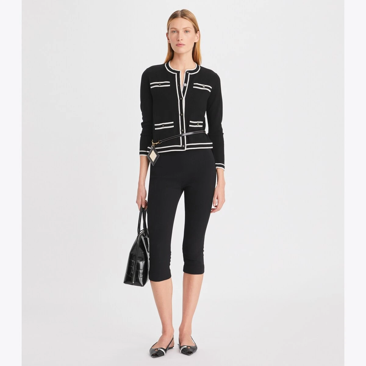 A tailored take on the ladylike sweater. The Kendra Cardigan is knit from super-soft merino wool with contrast trim and a smooth silk lining featuring our T Monogram. It is a polished and versatile layer to wear over everything from t-shirts to sweeping dresses.