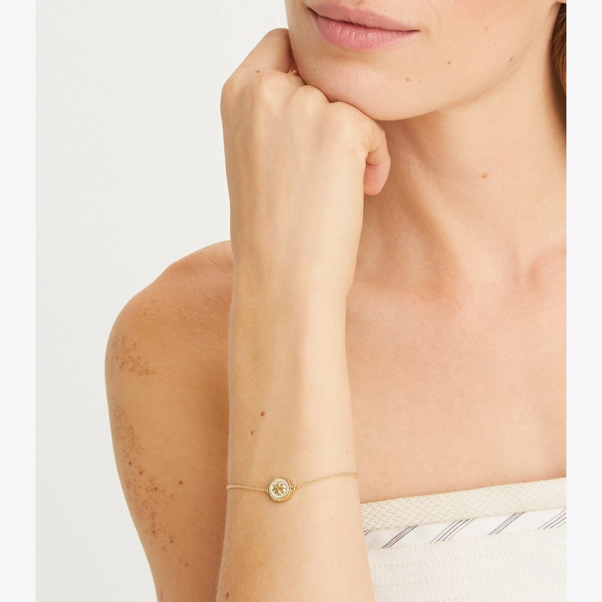 Understated polish. The Kira Chain Bracelet transforms our signature logo into a mixed-metal charm on a delicate chain.