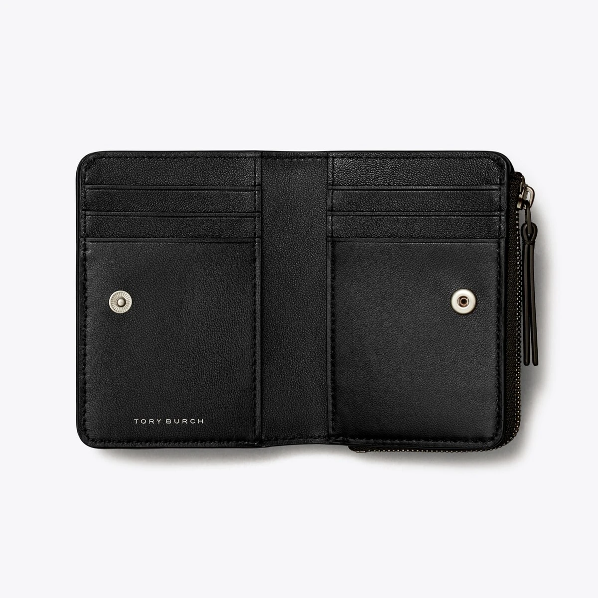The Kira Bi-Fold Wallet is made of soft chevron-quilted leather with beveled Double T hardware. It is perfectly sized for mini bags, with multiple compartments, including a coin pocket.