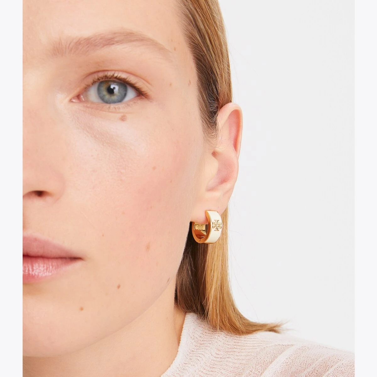 The Kira Enamel Hoop Earring transforms our signature Double T into graphic hardware on smooth enamel — perfect for day or evening. For pierced ears.