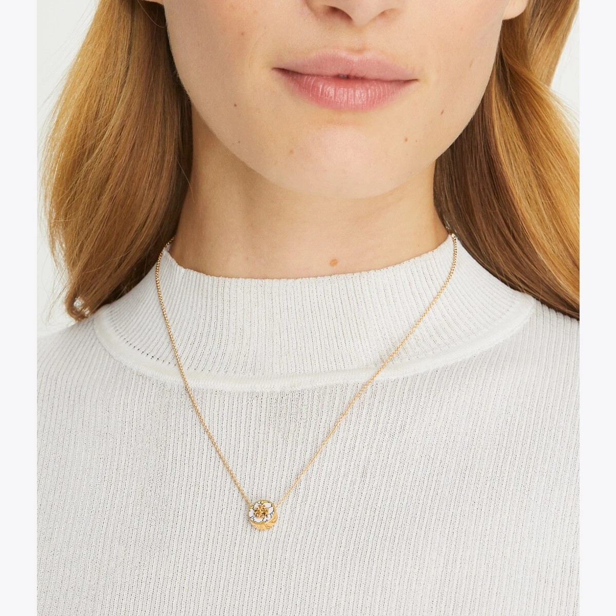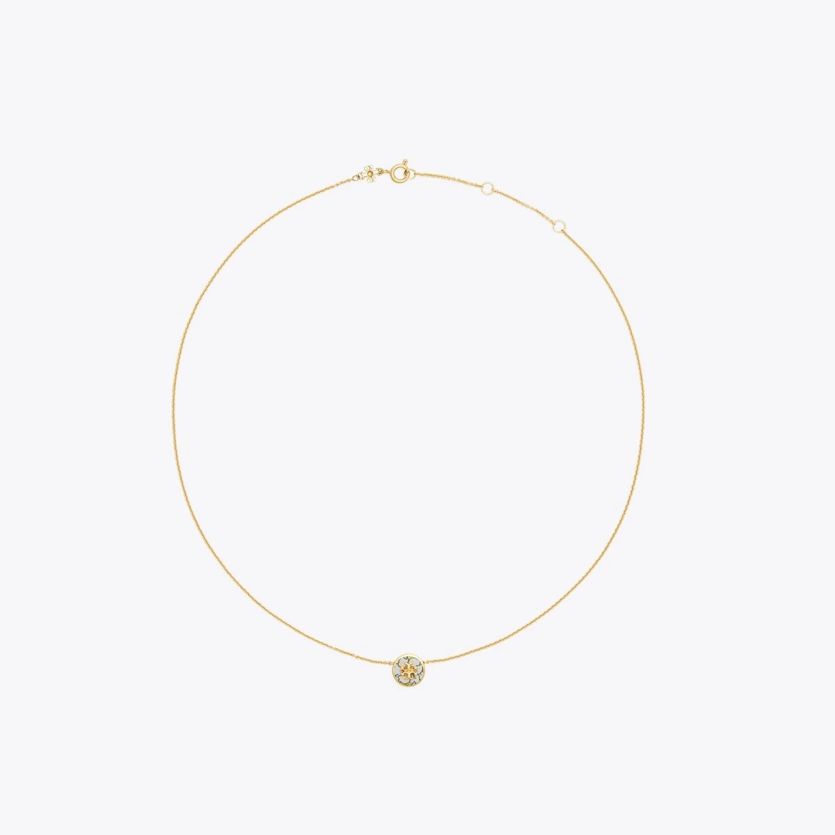 Understated polish. The Kira Enameled Pendant Necklace transforms our signature logo into a lacquered charm on a delicate chain.