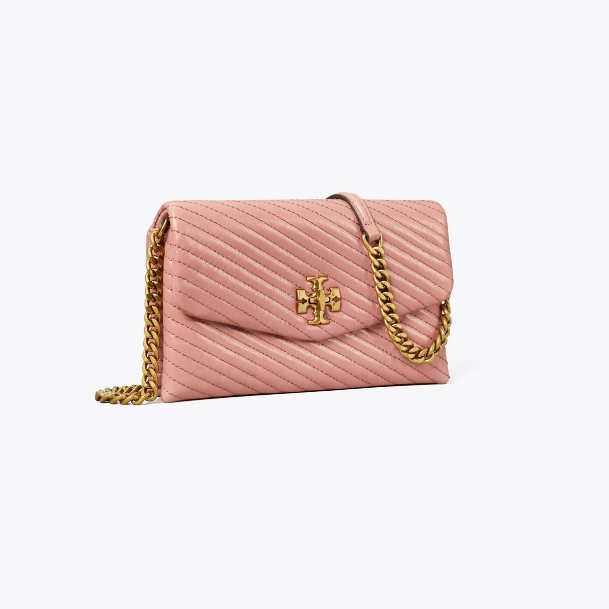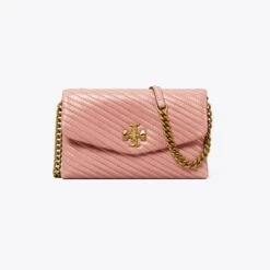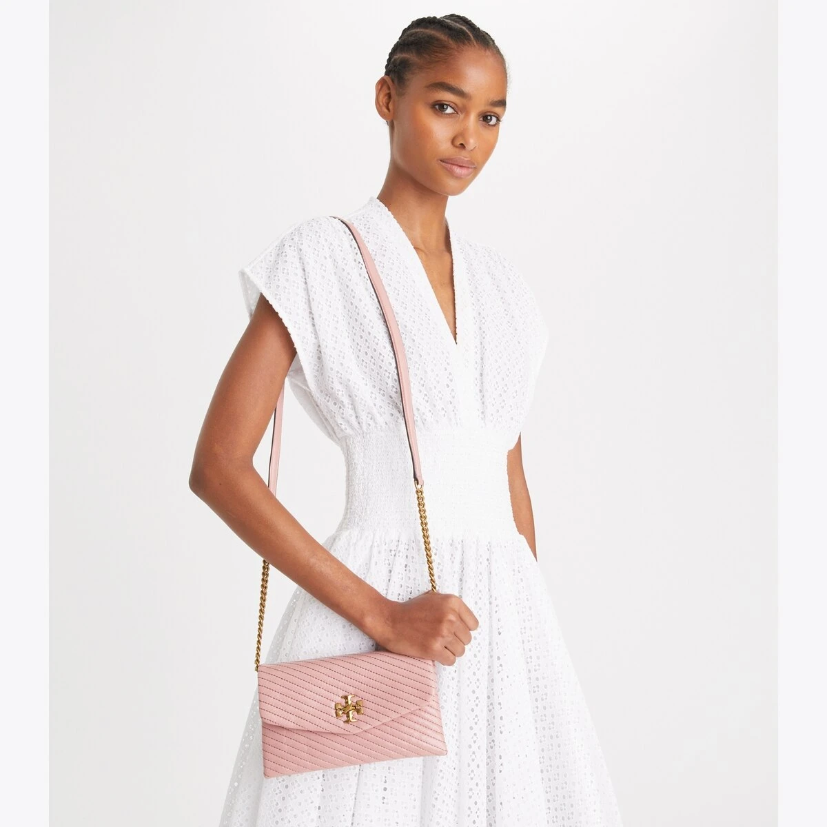 The Kira Moto Quilt Chain Wallet is made of soft micro-quilted leather with our beveled Double T as graphic turn-lock hardware. It is finished with a chain-and-leather crossbody strap.
