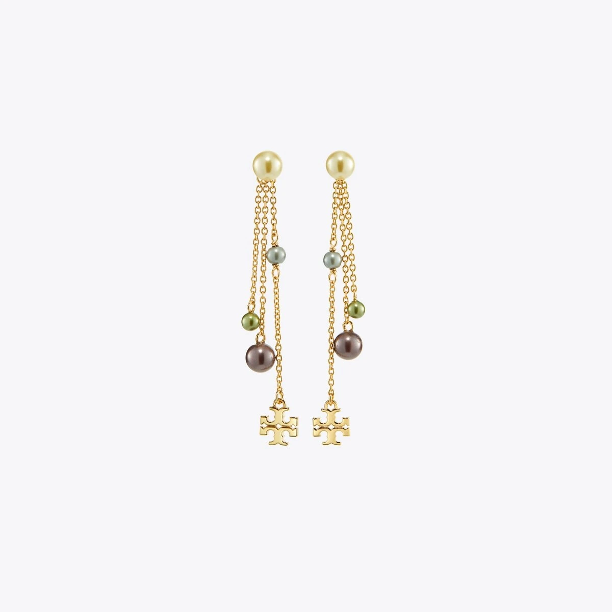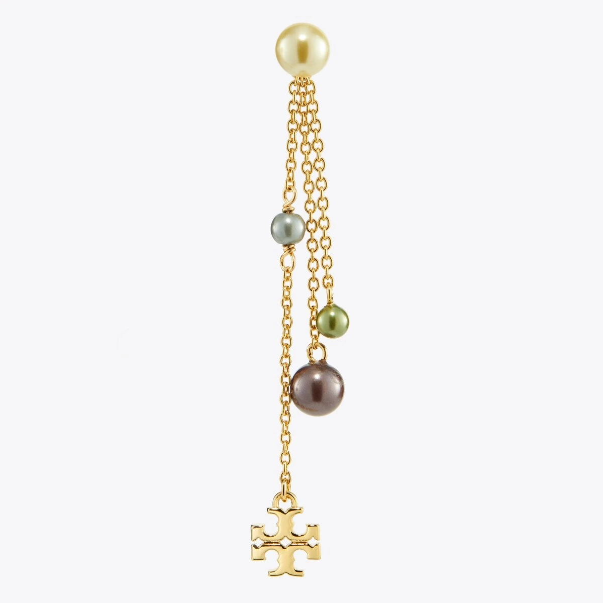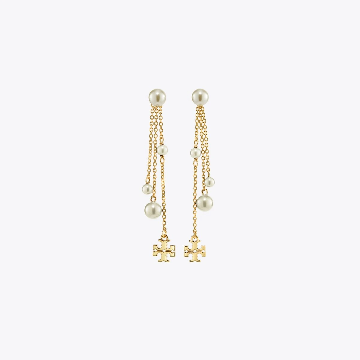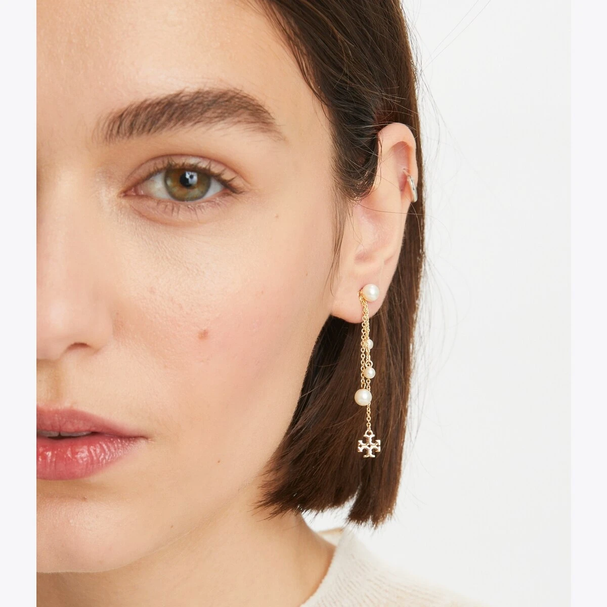 The Kira Linear Earring pairs our iconic Double T with glass pearls. For pierced ears.