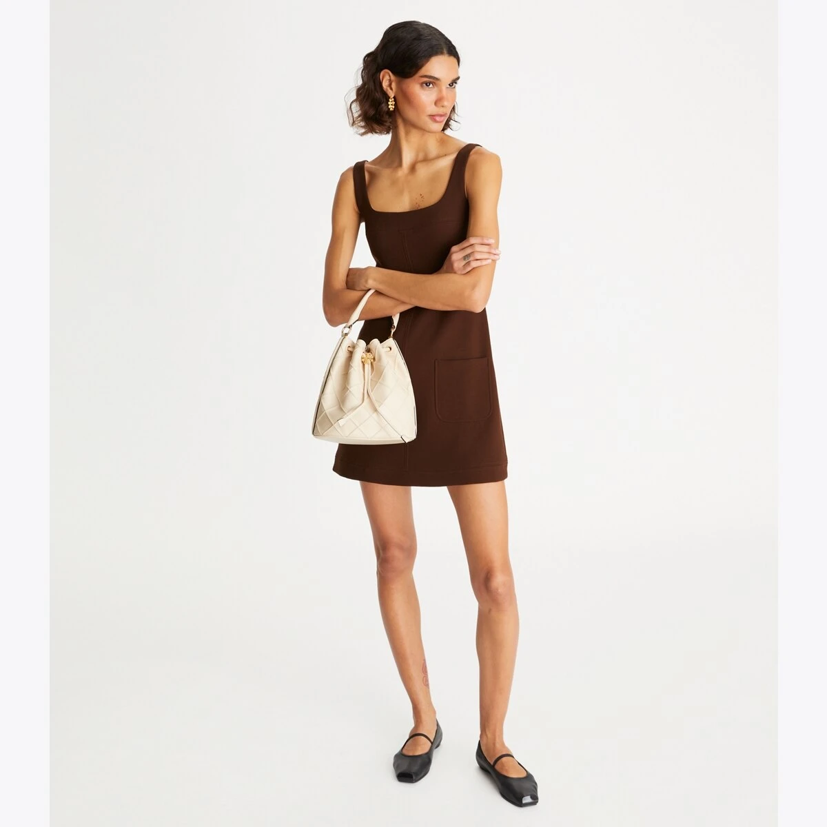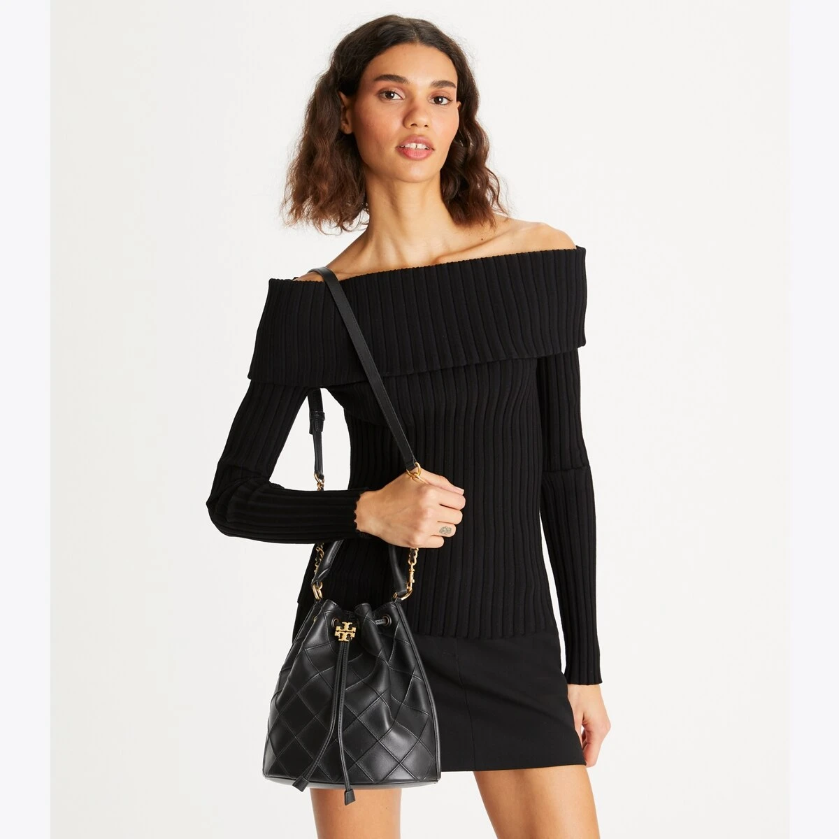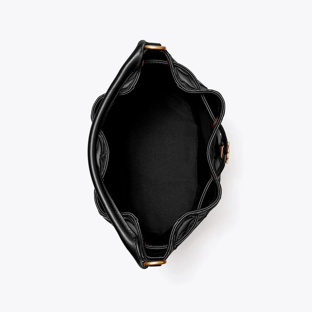 Enduring glamour. The new Fleming Bucket Bag is made of the softest leather with pintucks in a diamond pattern. Our Double T cord stopper works as a keeper for the drawstrings.