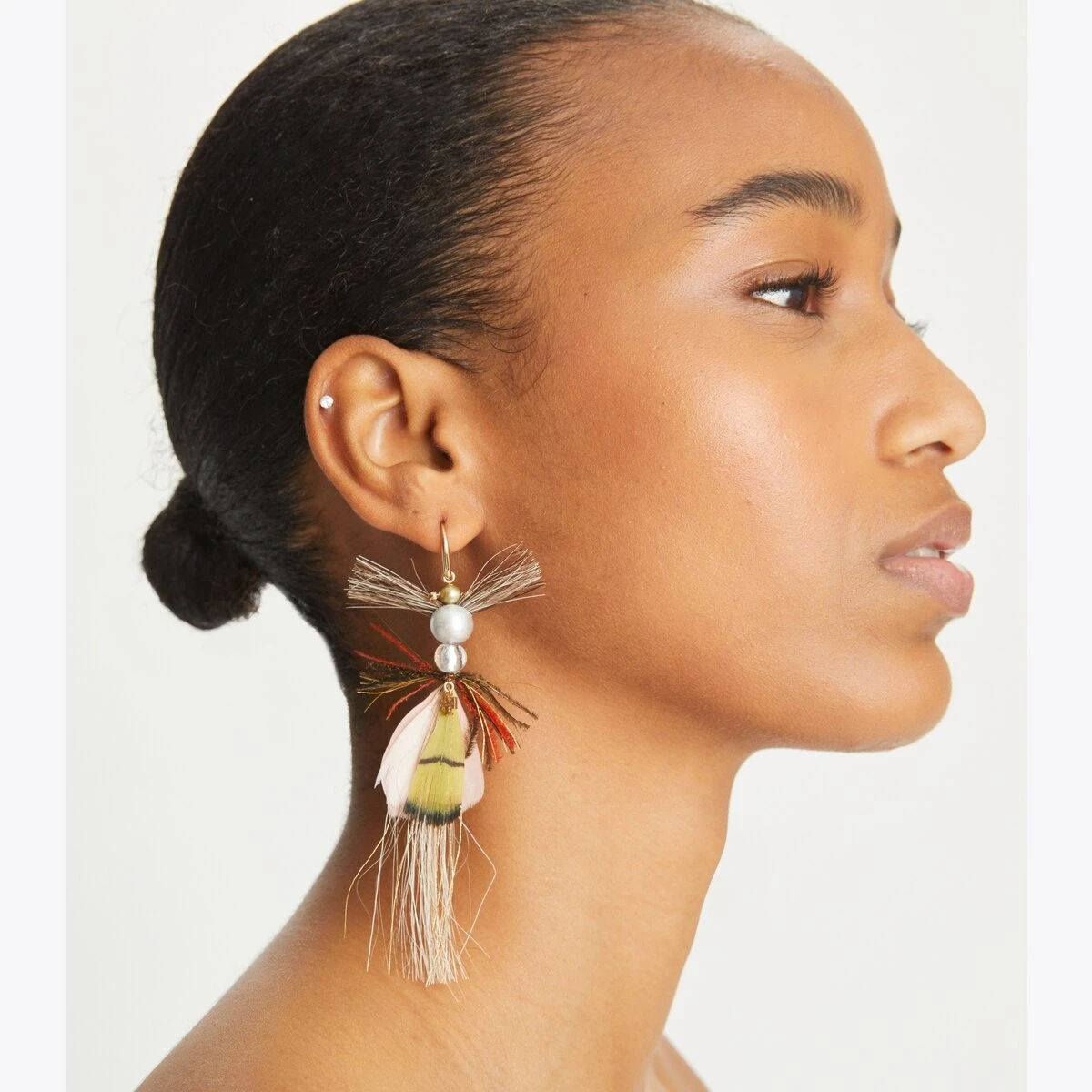 Inspired by the unique design of fishing lures, our Lure Earring is crafted in a mix of glass beads, natural feathers, and colorful thread. An easy way to add impact to any look. For pierced ears.