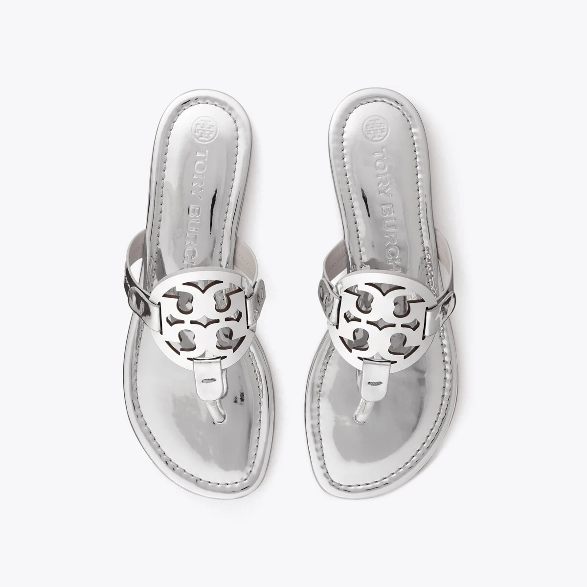Our iconic Miller Sandal, in mirrored leather, features an ultra-comfortable cushioned insole, a seamlessly wrapped toe post and a laser-cut double ‘T’ with hand-painted edges, positioned to hug the foot for a perfect fit. Always chic, it’s a beloved classic for sunny days and getaways.