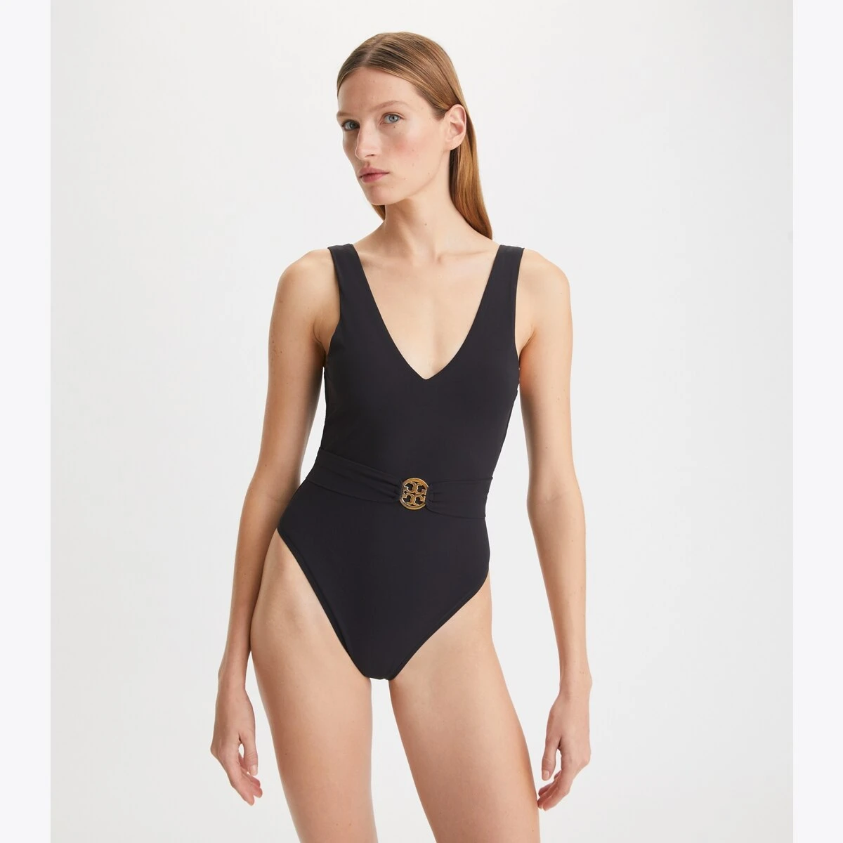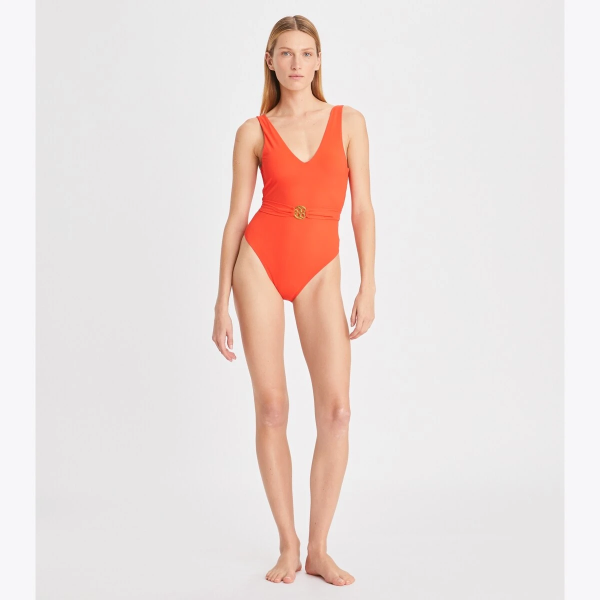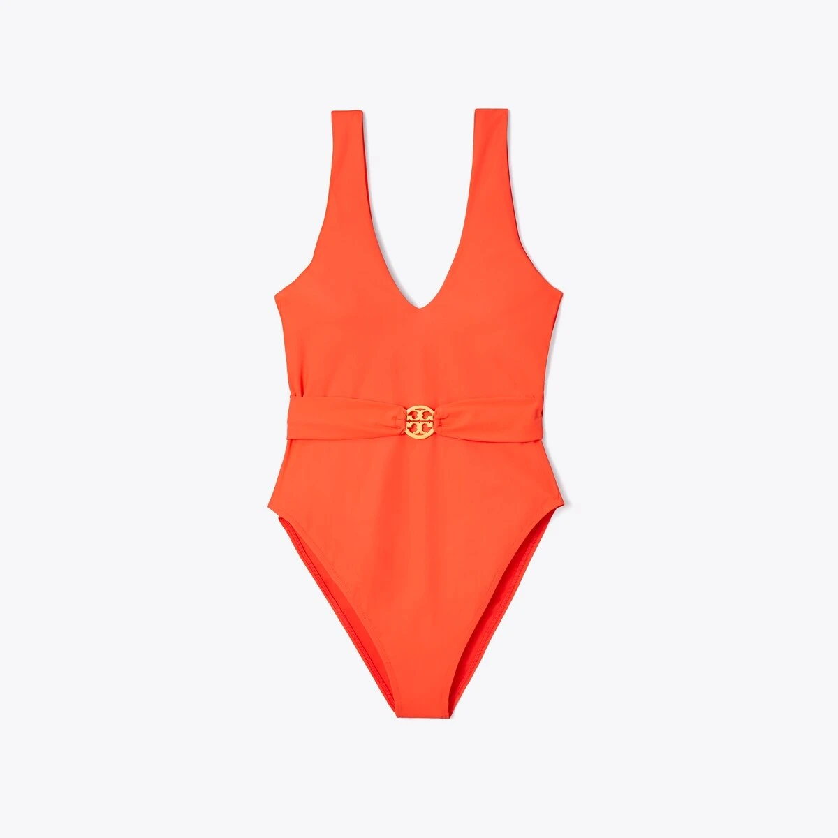 Gold double-T hardware highlights the belted waist and dipped neckline of the Miller Plunge One-Piece — our iconic collection, reimagined as an ultra-flattering swimsuit. Made of the highest-quality Sensitive® Fabrics by Eurojersey (a world-renowned source from Italy), which feature four-way stretch, impeccable fit, long lifespan and SPF 50 sun protection. It comes in a range of colors — including limited-edition Poppy Red from our exclusive capsule, available online only.