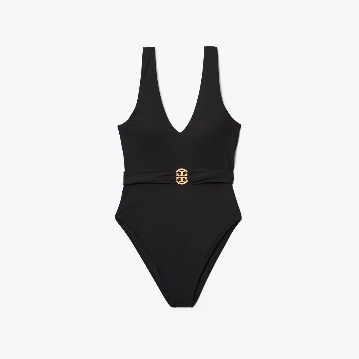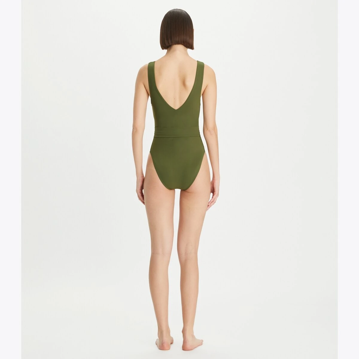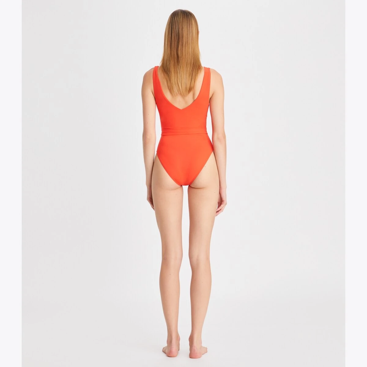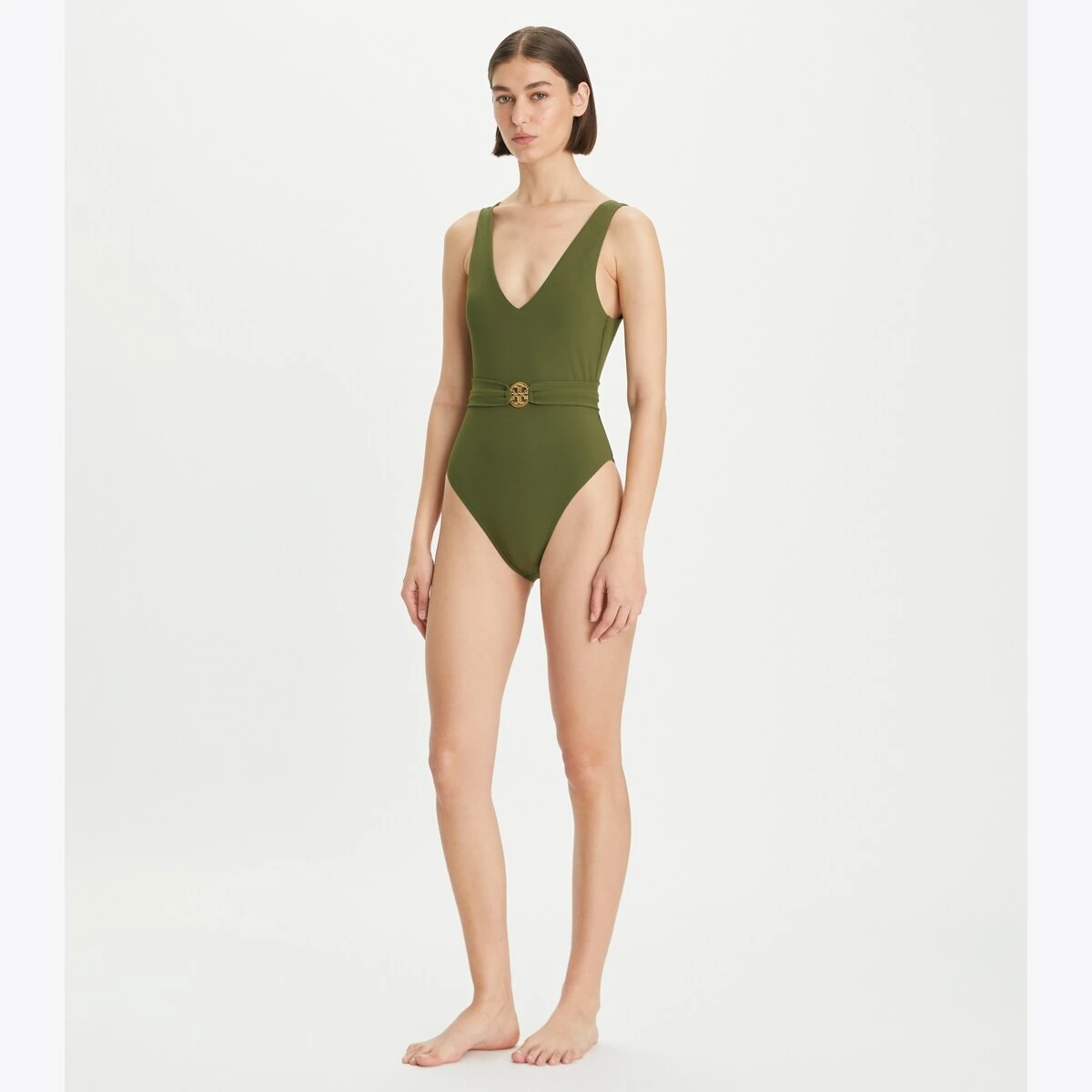 Gold double-T hardware highlights the belted waist and dipped neckline of the Miller Plunge One-Piece — our iconic collection, reimagined as an ultra-flattering swimsuit. Made of the highest-quality Sensitive® Fabrics by Eurojersey (a world-renowned source from Italy), which feature four-way stretch, impeccable fit, long lifespan and SPF 50 sun protection. It comes in a range of colors — including limited-edition Poppy Red from our exclusive capsule, available online only.
