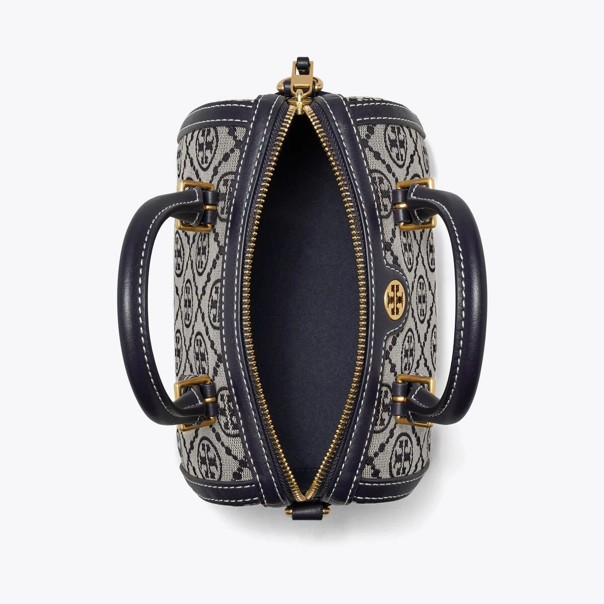 The mini barrel — luxury meets utility in a classic silhouette. Perfect proportions in a distinctive shape that dates back to 16th-century mariners. The modern leather frame and stitch-wrapped top handles with buckle details reinforce the craftsmanship, preserving its structure and shape. Worn carried or crossbody, in navy and, new to the T Monogram collection, hazelnut.