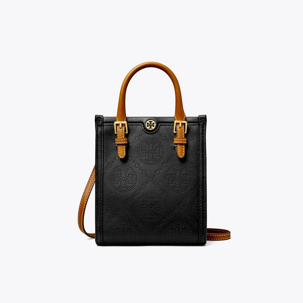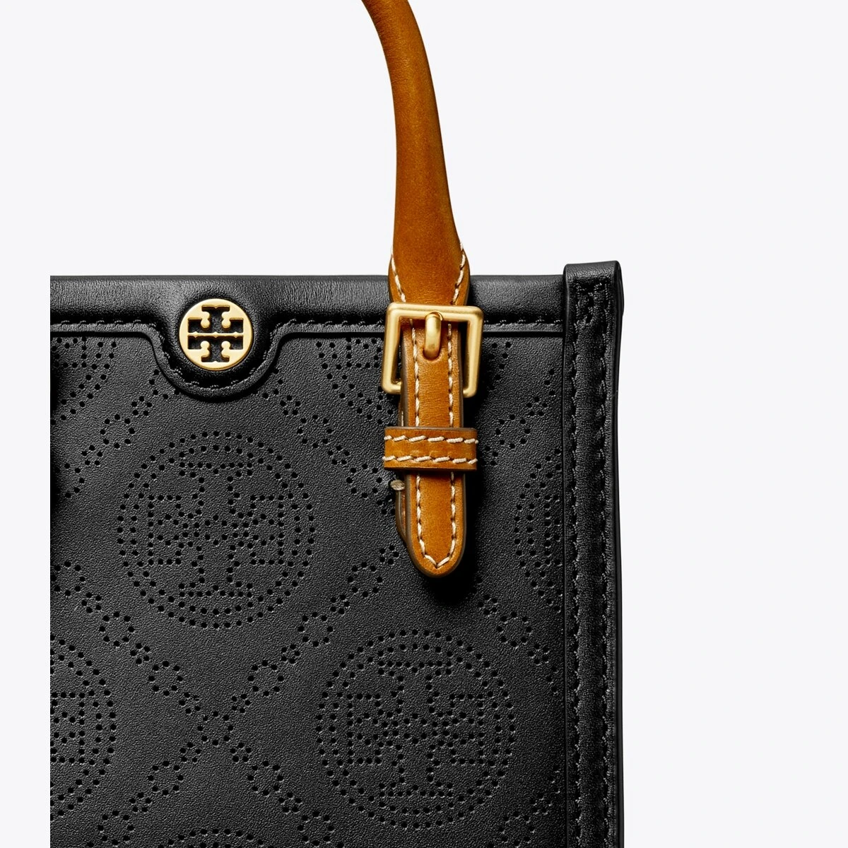 The mini tote is crafted in perforated leather, with adjustable handles and a detachable crossbody strap. Lined in soft microsuede, every detail is considered, with special attention to function and versatility.