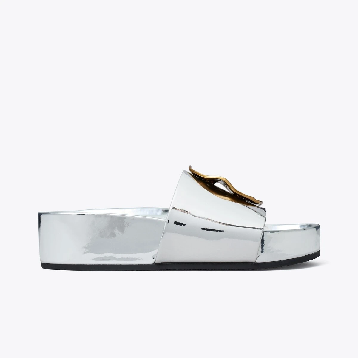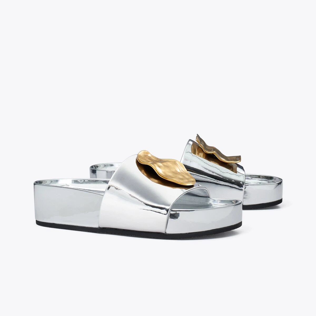 Our Patos slide is one of the most comfortable shoes we’ve ever made. Molded foam insole. Soft, metallic leather lining. A chic flatform finished with mismatched metal discs, evocative of ’60s glamour. Sporty and polished, it looks great dressed up or down.