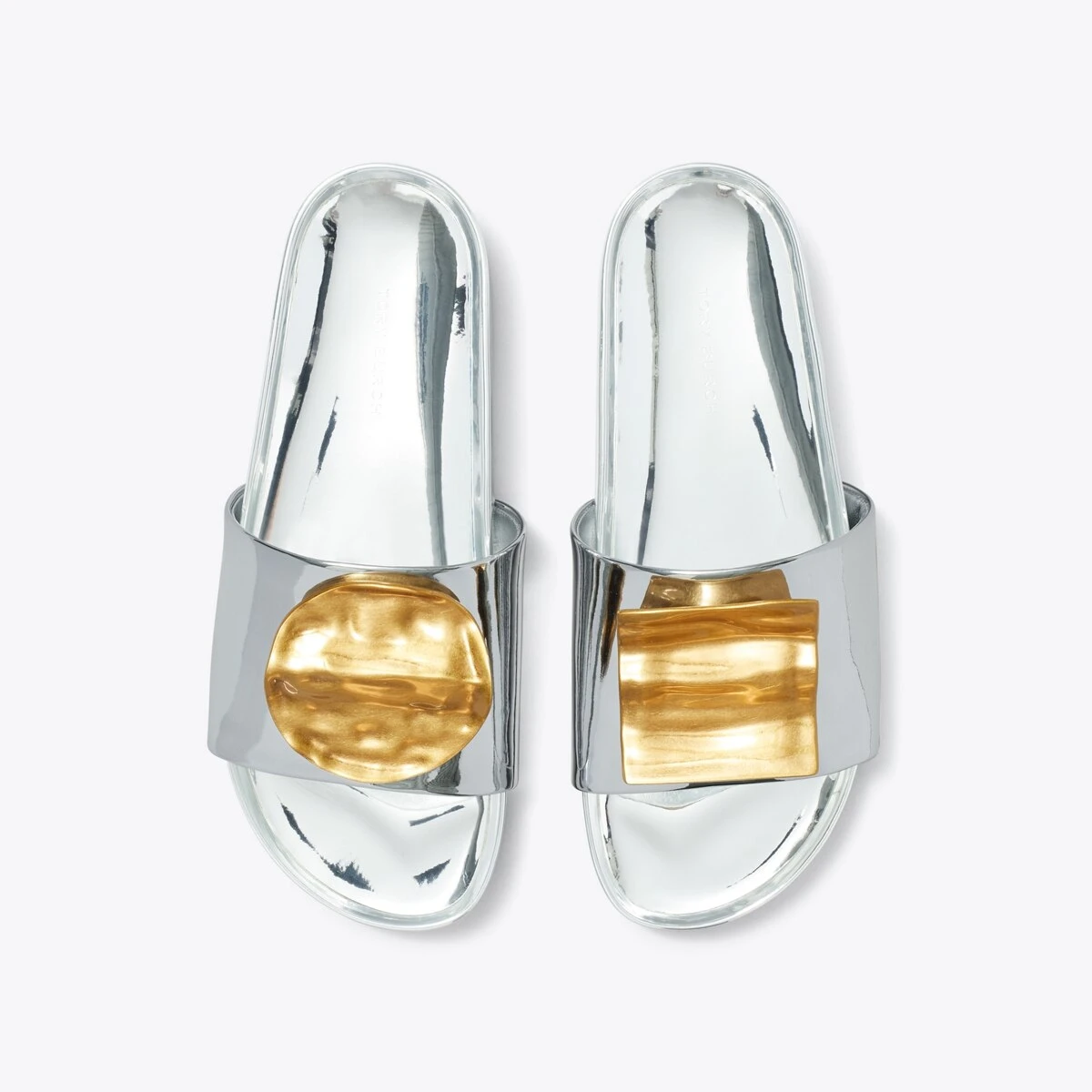 - Mirrored metallic polyurethane upper