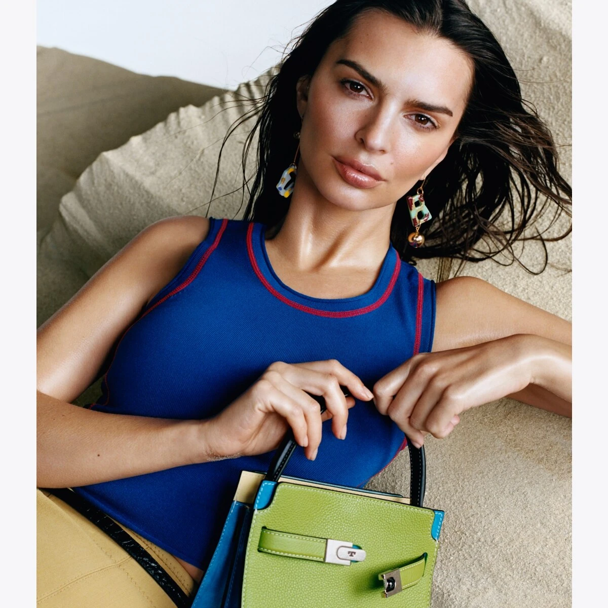 - Top handle with 3.5″ (9cm) drop; adjustable, removable crossbody strap with 22.2″ (56.5cm) drop; webbing strap with 18.5″ (47cm) drop