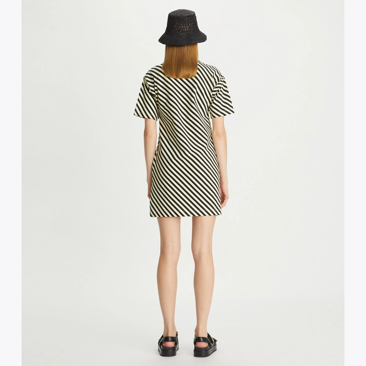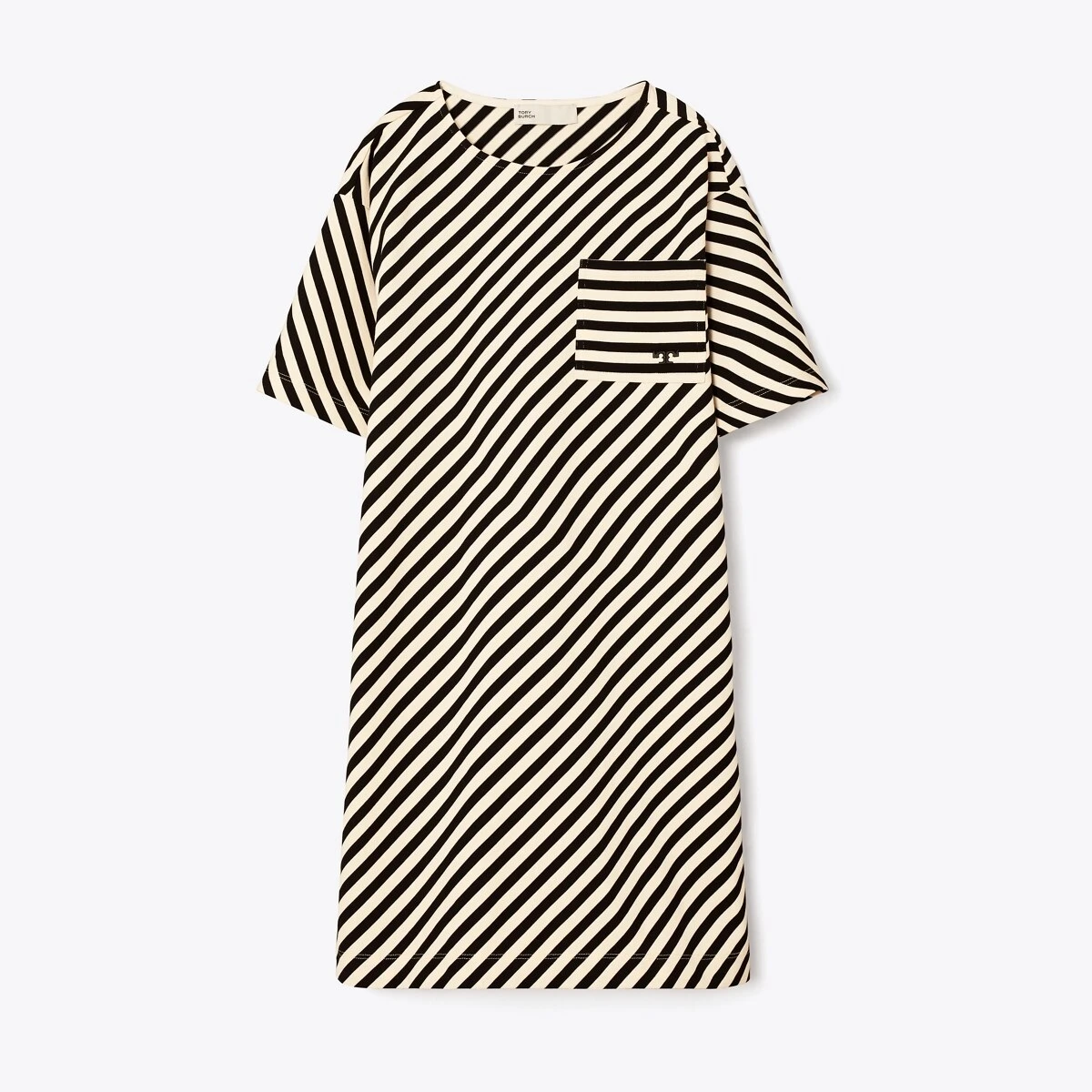 The collection is inspired by the freedom and versatility of classic American sportswear. Timeless pieces are done in new ways, with a focus on casual elegance. A simple T-shirt dress in cotton jersey is updated with a boxy silhouette and wide sleeves. Finished with a contrast stripe pocket featuring an embroidered Double T, it’s an easy piece to wear on its own or layered.