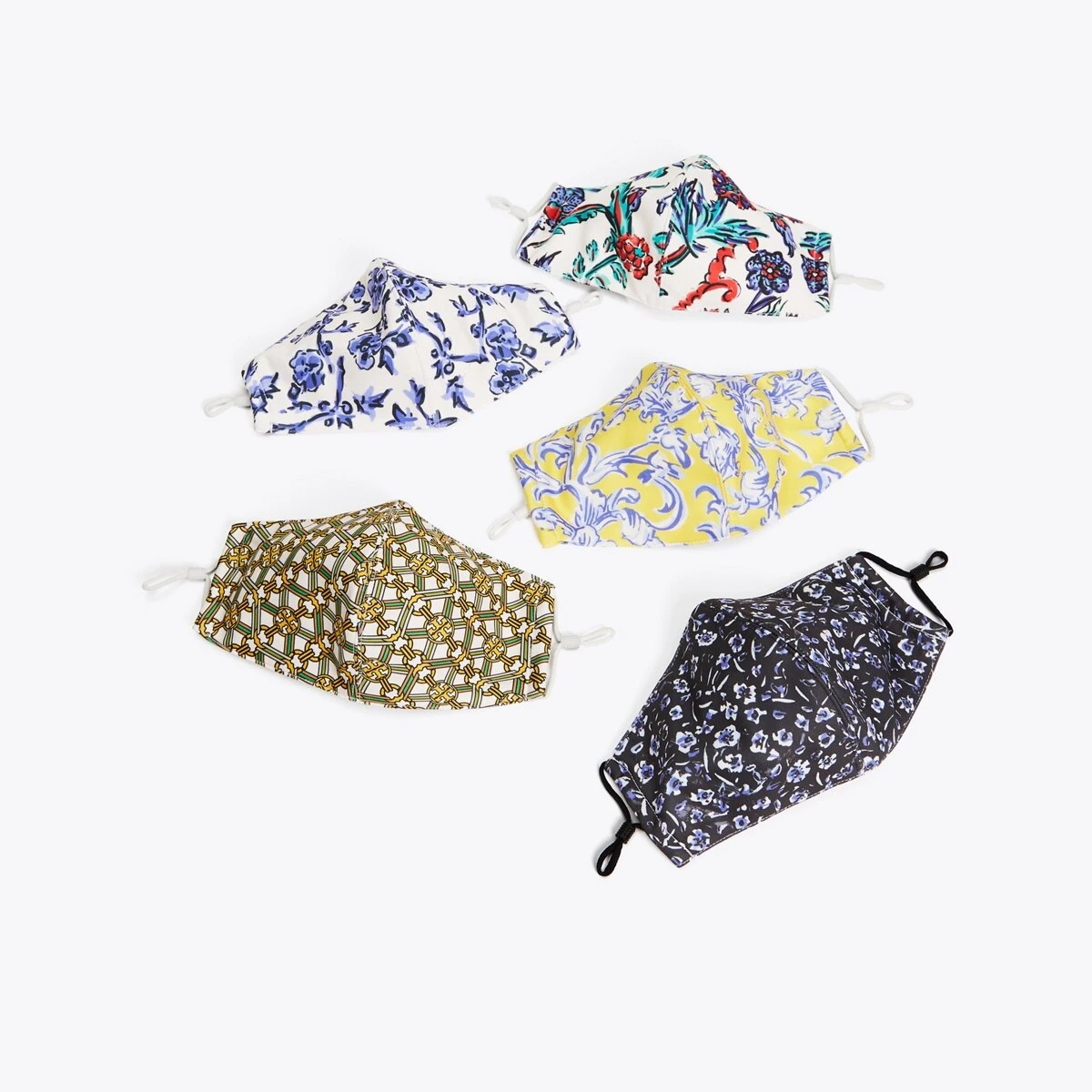 Featuring seasonal prints, our new Face Masks are made from two layers of lightweight, moisture-wicking fabric. To ensure a comfortable fit, each mask has a contoured wire at the nose, adjustable ear loops and an interior pocket that fits a filter (not included). Sold in sets of five, including one of each print.