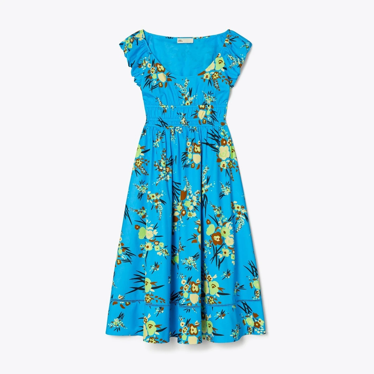 The Scoop-Neck Dress is bright and effortless — a perfect style for spring and summer. Crafted from lightweight cotton, it has a fit and flare silhouette, smocked top and gently puffed cap sleeves to balance proportions.