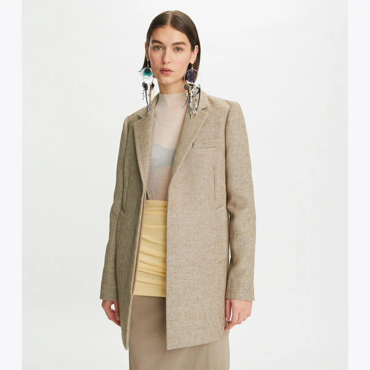 The new collection revisits signature pieces with a modern perspective. Inspired by traditional menswear, our wool blazer is crafted from a soft Italian wool blend with clean details including a notched lapel, high shoulder and sharp hem. Cut for a structured yet relaxed fit, the minimalist silhouette is meant to be worn open.