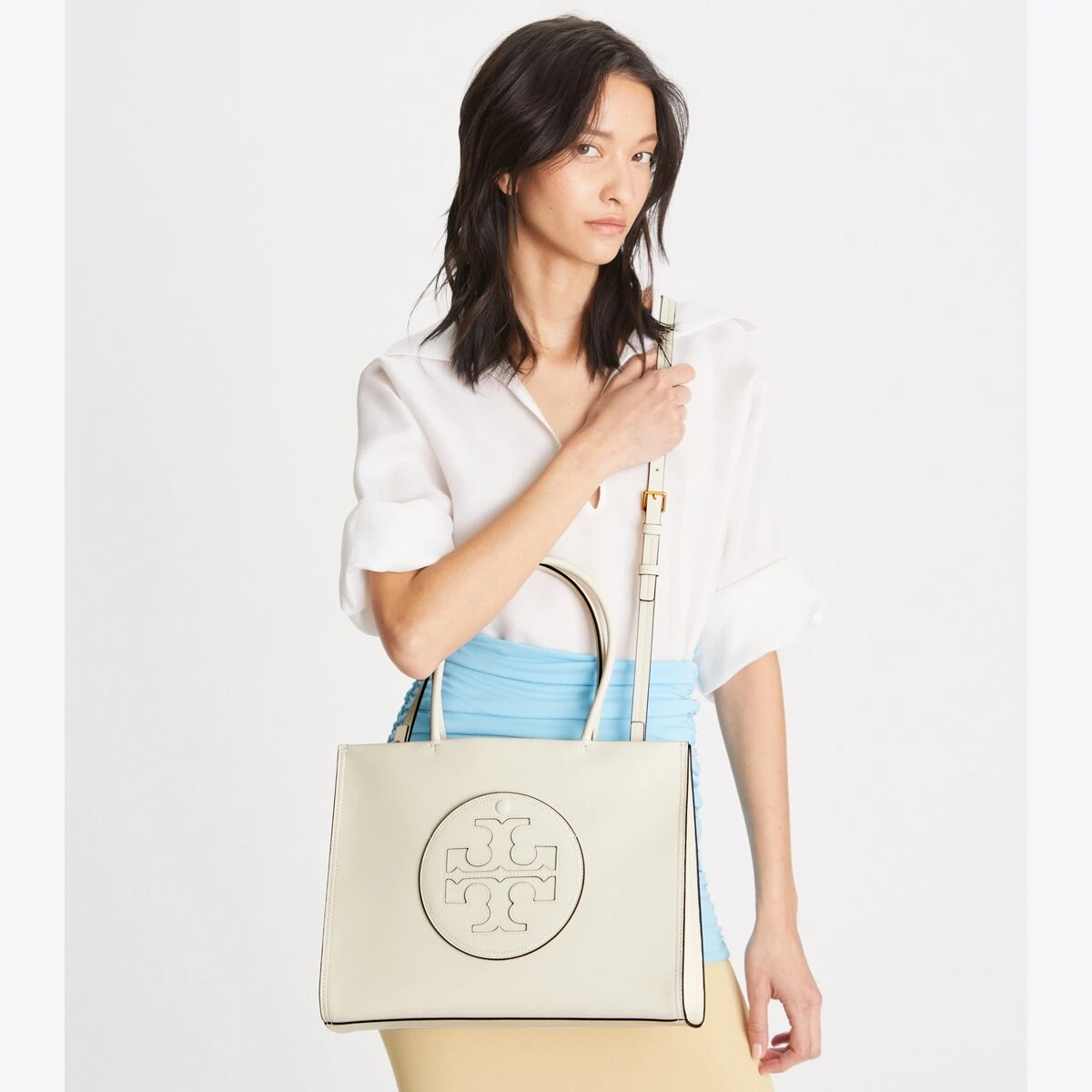 - Top handles with 7.3″ (18.5cm) drop; adjustable, removable crossbody strap with 20.5″ (52cm) drop