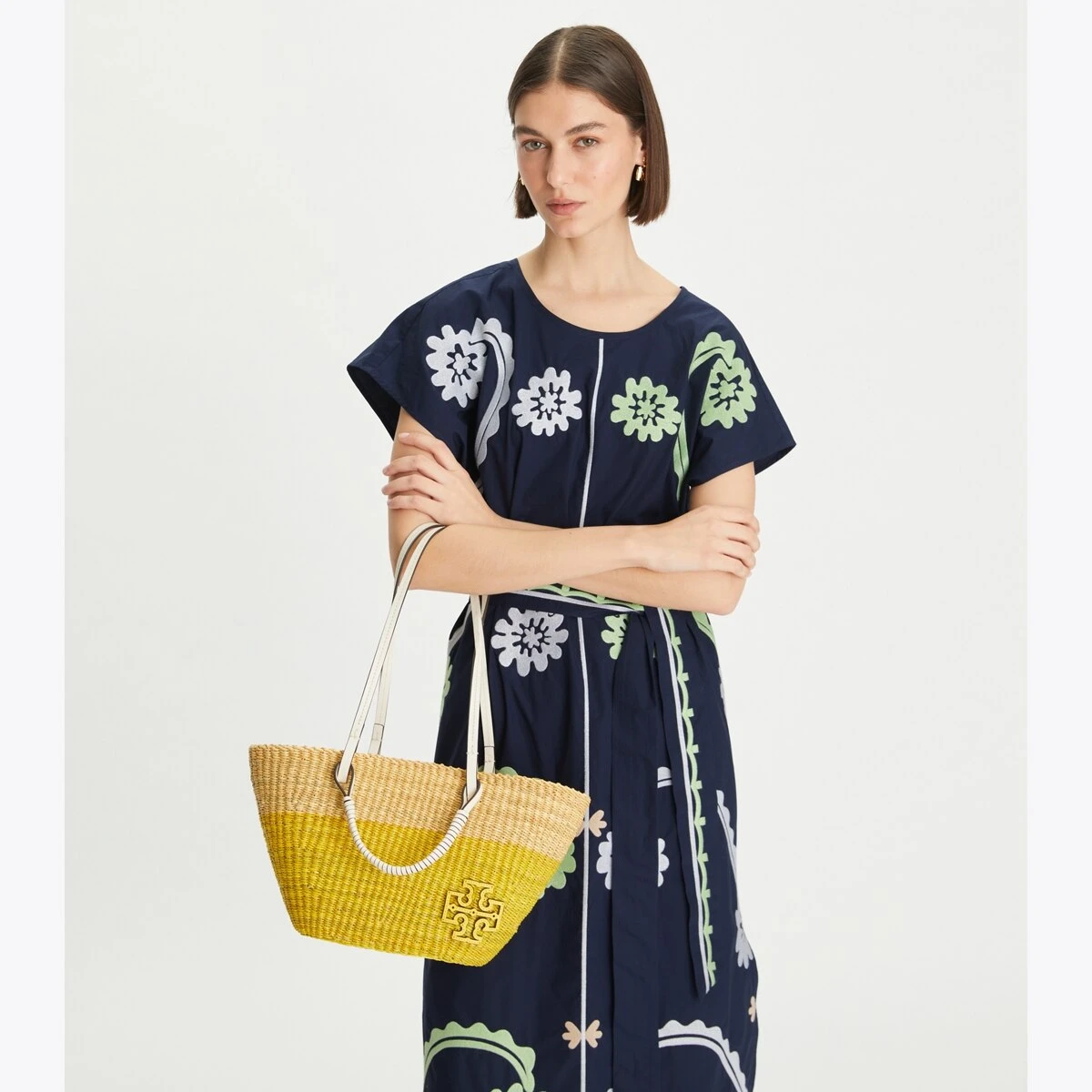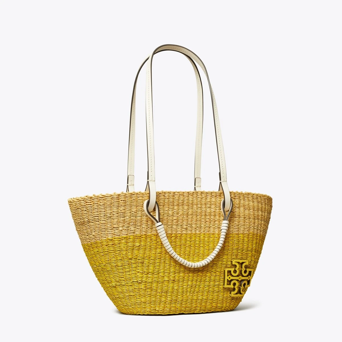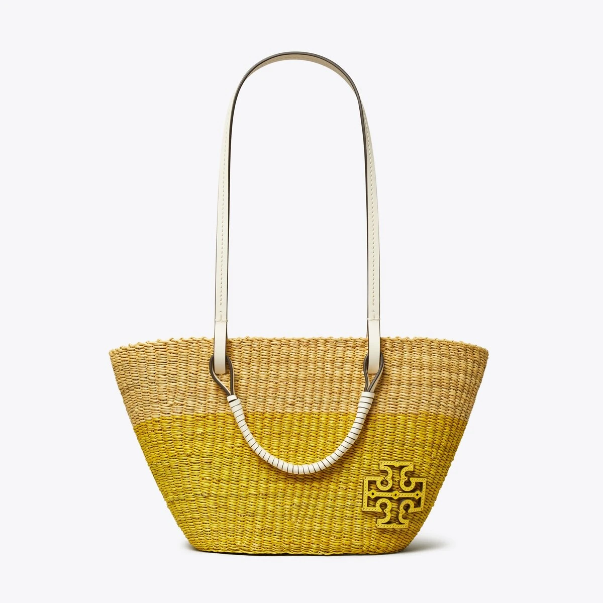 - Leather wrapped straw top handles with 4.7″ (12cm) drop; leather shoulder strap with 11″ (28cm) drop