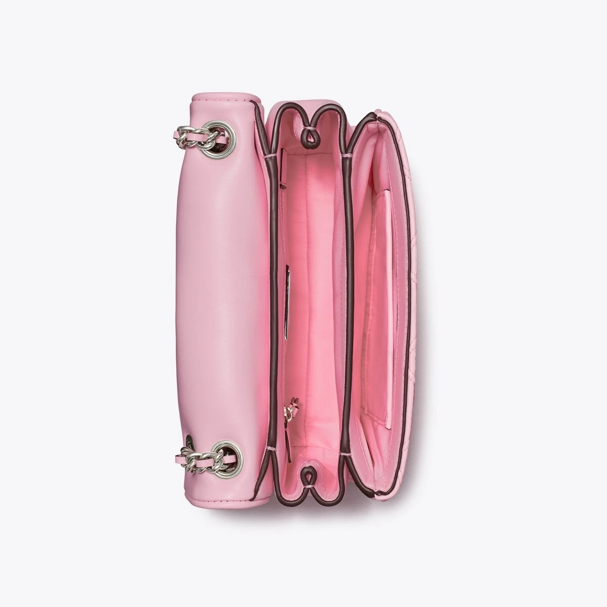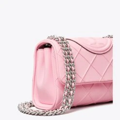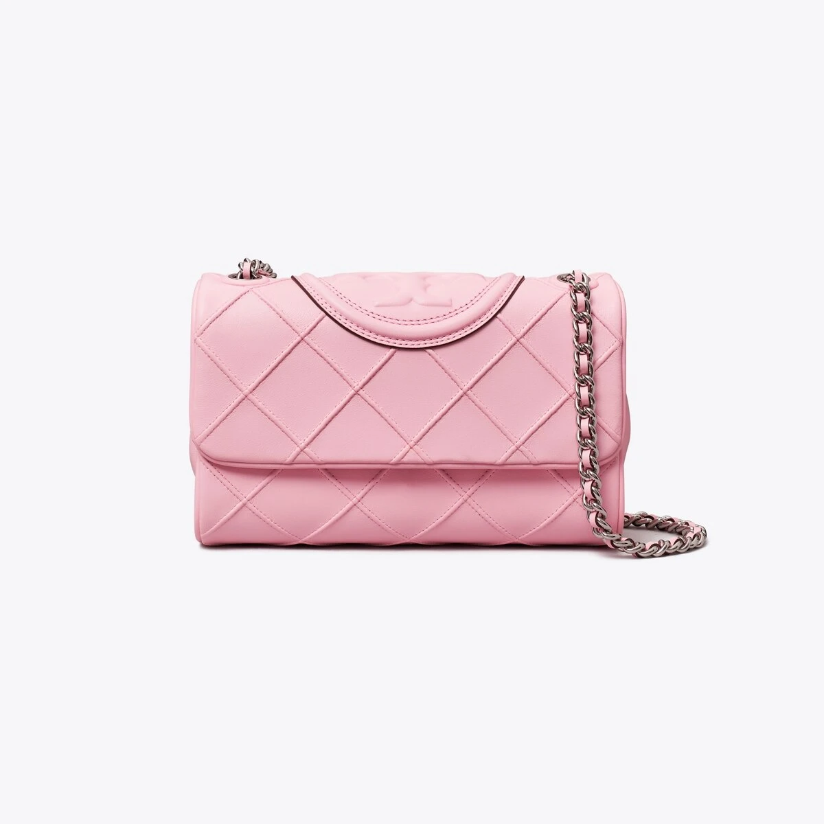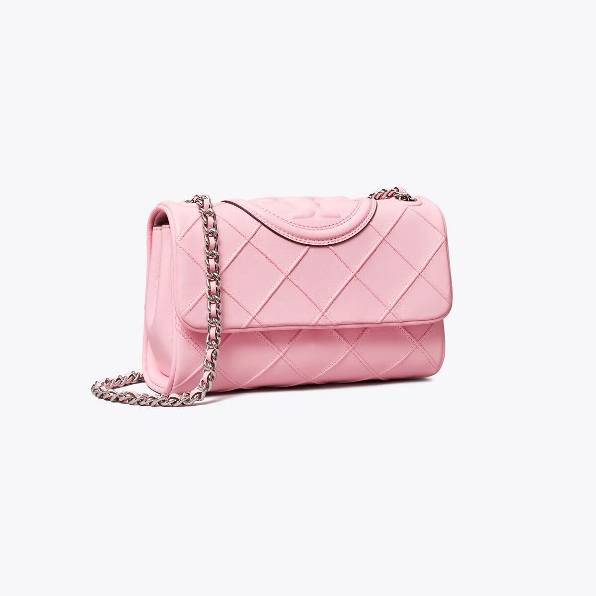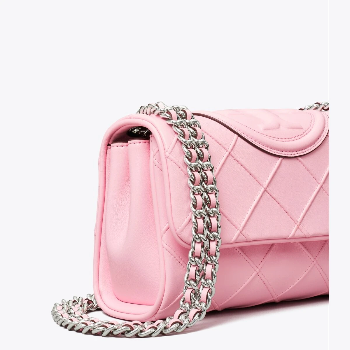 Enduring glamour. The new Small Fleming Soft Convertible Shoulder Bag is updated with pintucks in a diamond pattern and the softest leather. The feminine silhouette is sealed with an oversized bombé Double T. Braided with brushed chain, the strap can be worn long or short.