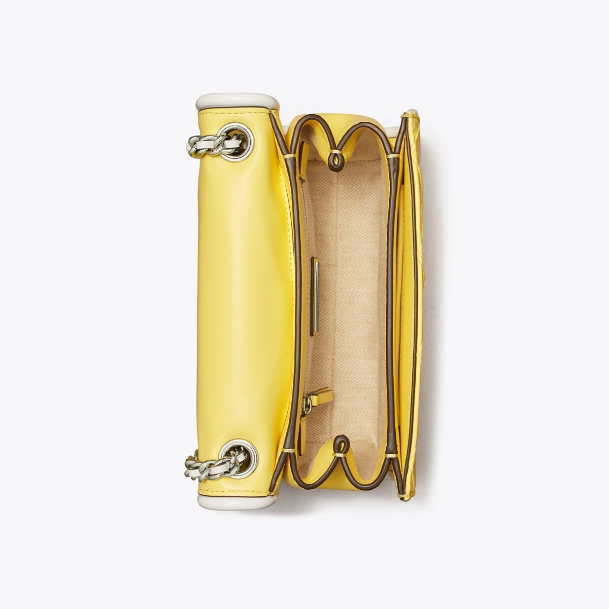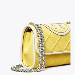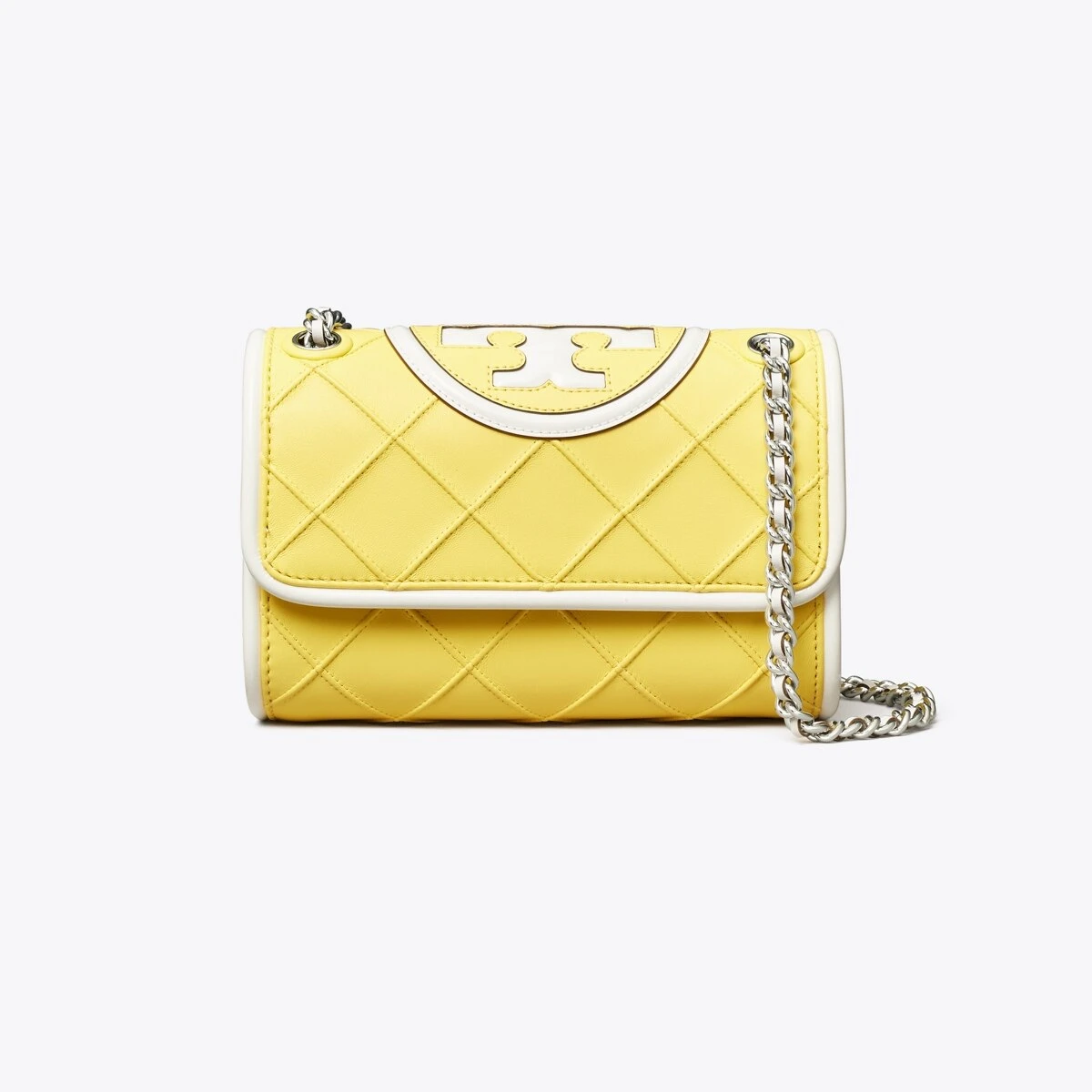 Enduring glamour. Our Small Fleming Soft Convertible Shoulder Bag is updated with pintucks in a diamond pattern and patent leather trim. The feminine silhouette is sealed with an oversized bombé Double T. Braided with brushed chain, the strap can be worn long or short.