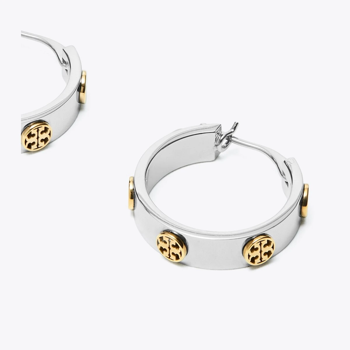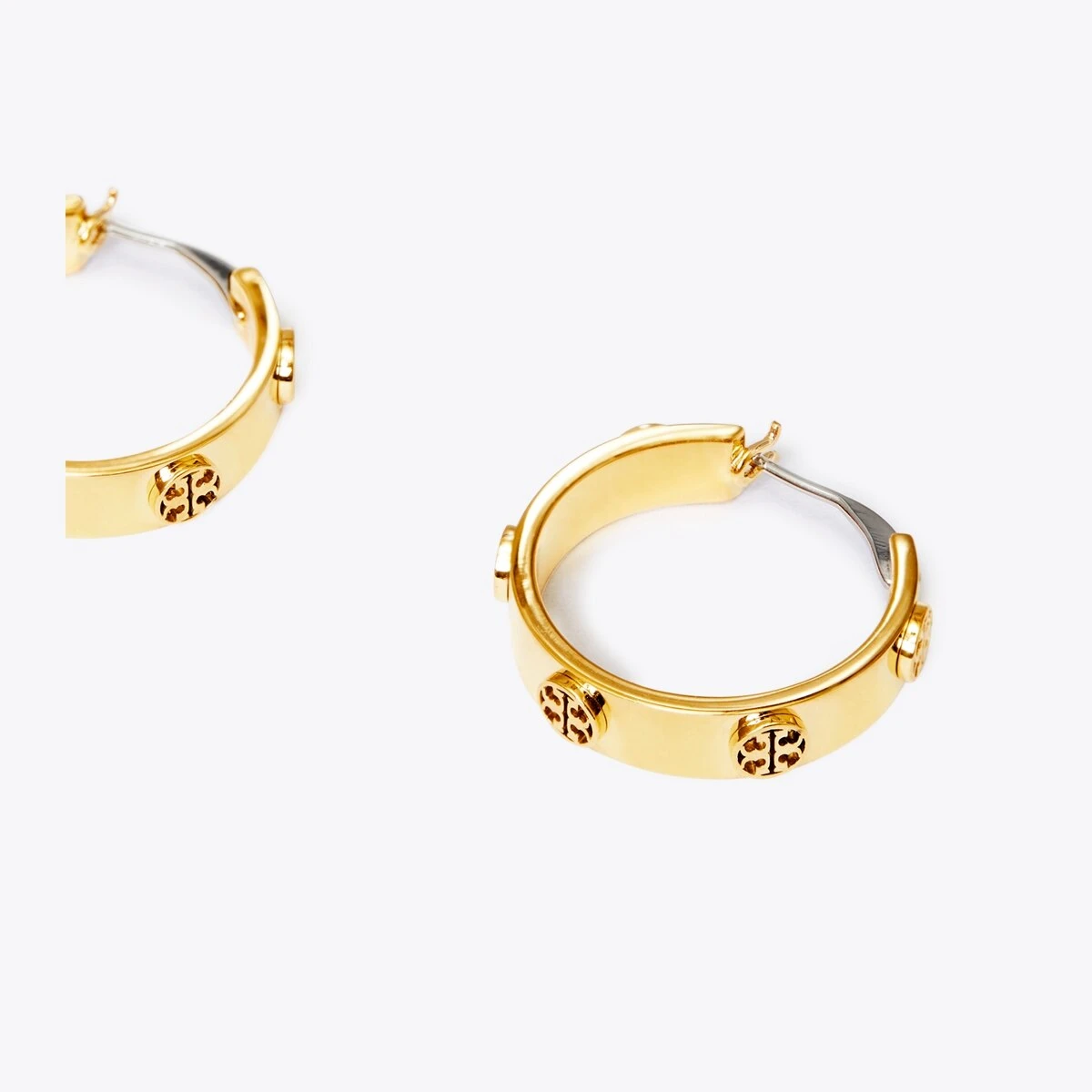Our iconic collection, reimagined as jewelry. Studded with graphic Double Ts, the Miller Earring is designed to hug the ear. For pierced ears.