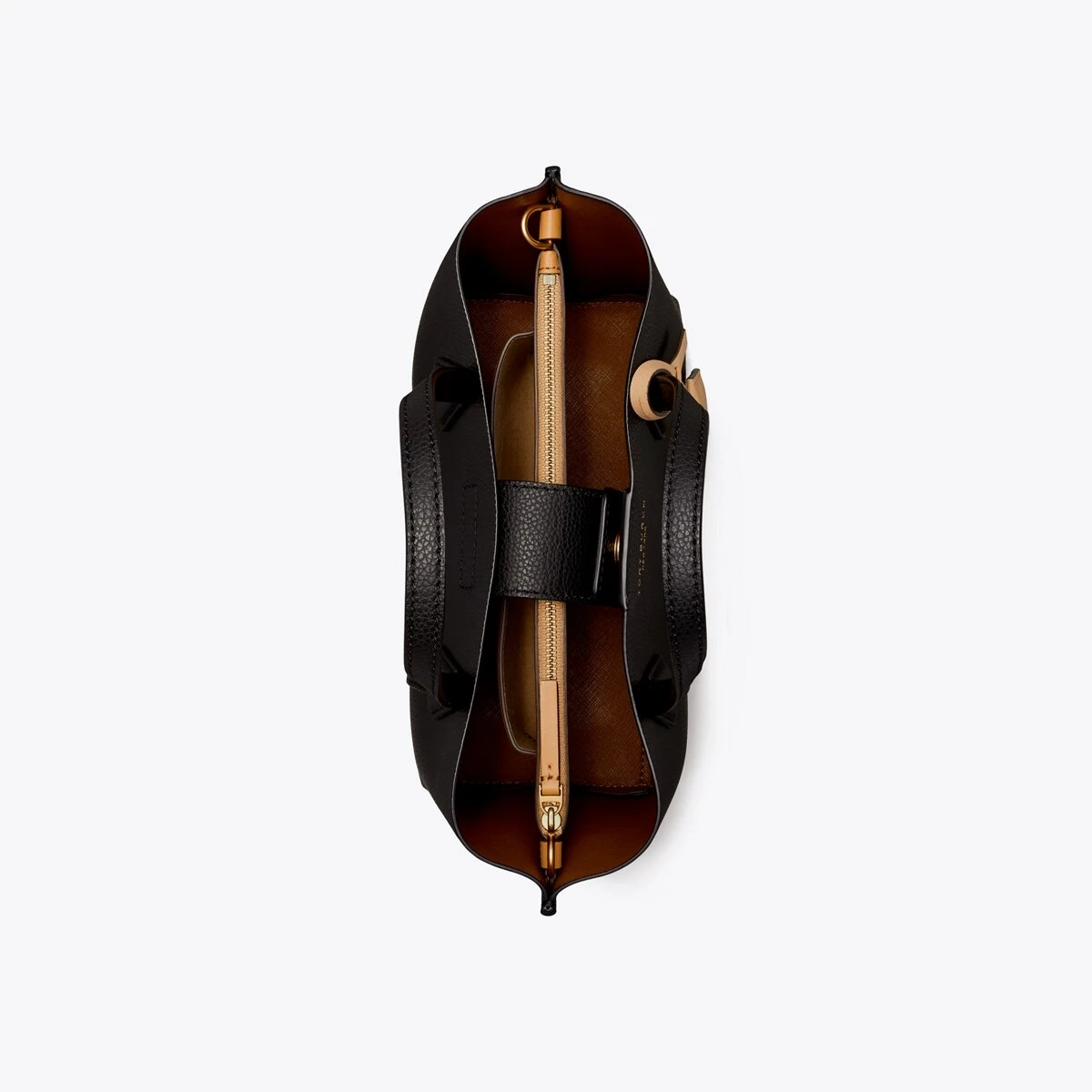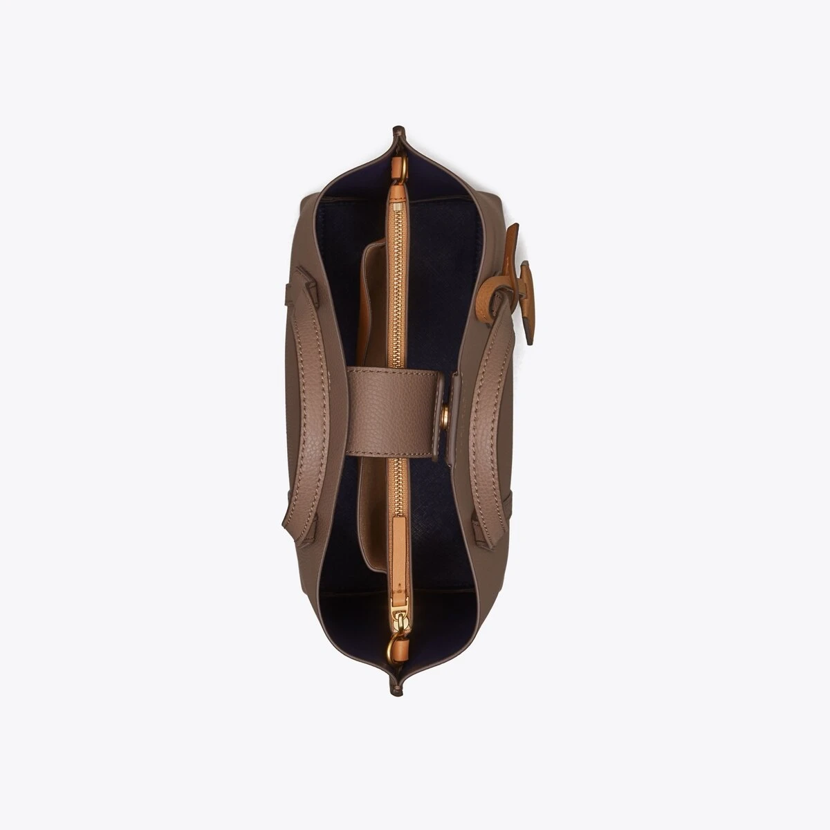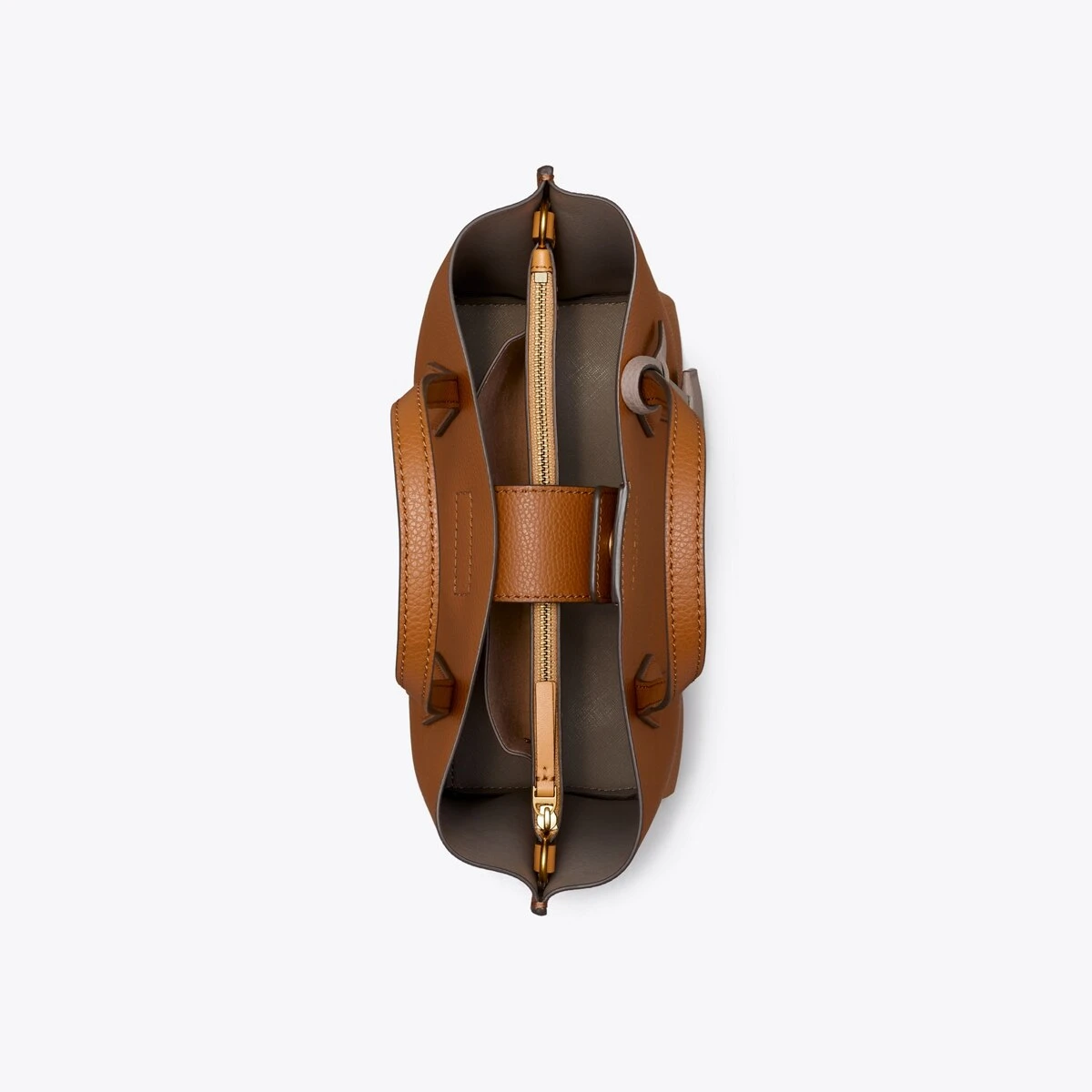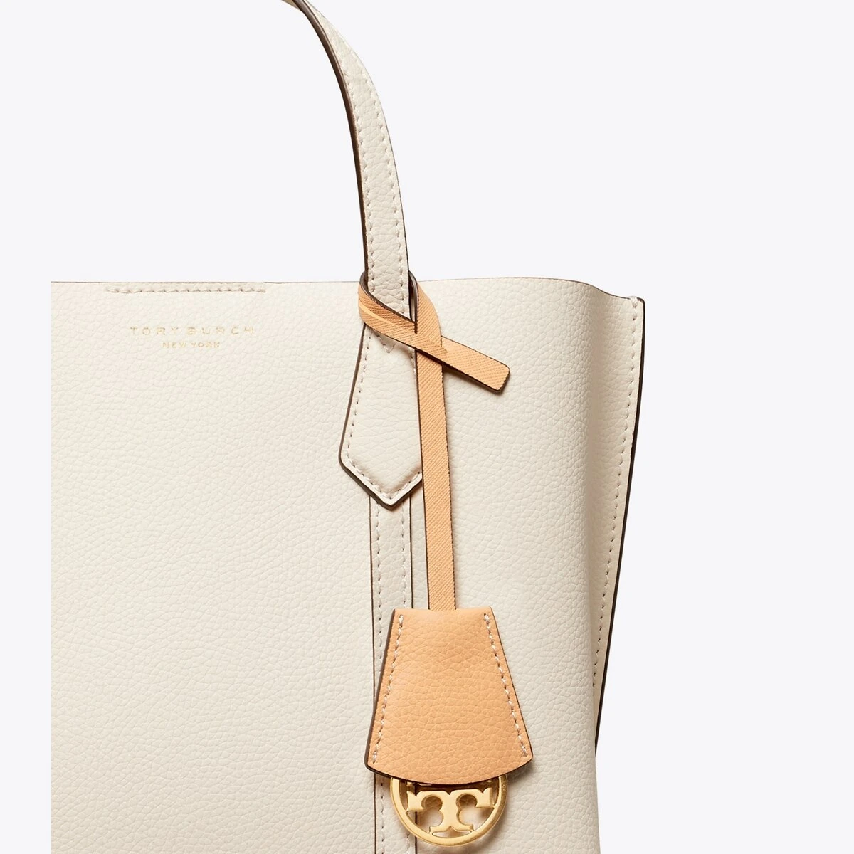 Made for multi-tasking. Our small Perry Triple-Compartment Tote Bag is made of rich Italian pebbled leather that’s bonded inside — making it soft yet structured. Contrast-color details appear throughout: from the interior to the brushed gold charm. It has a center zip pocket and an optional crossbody strap.