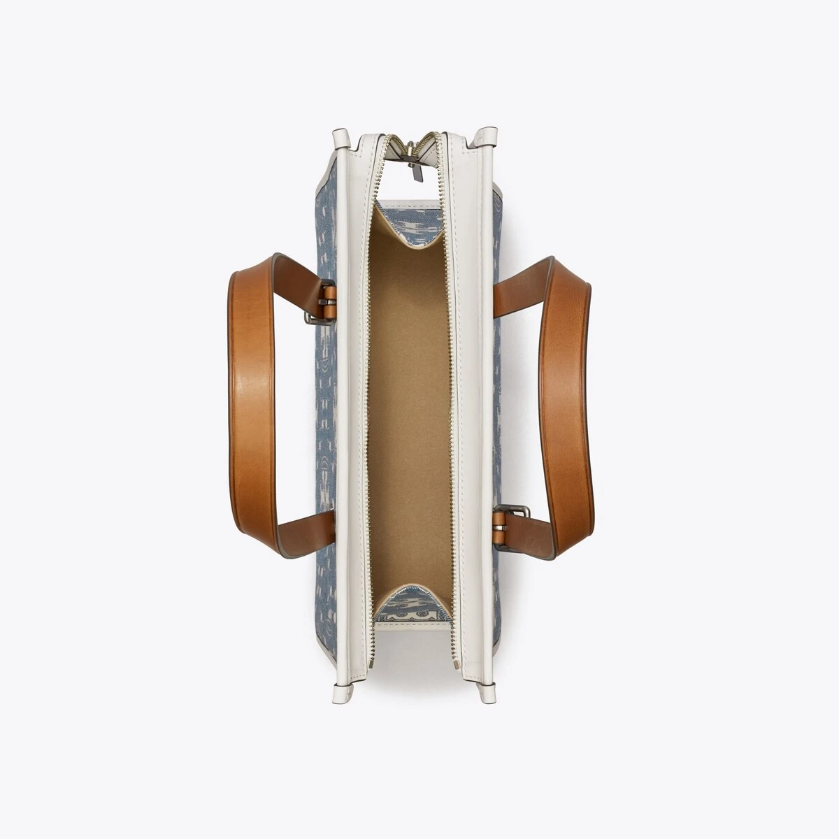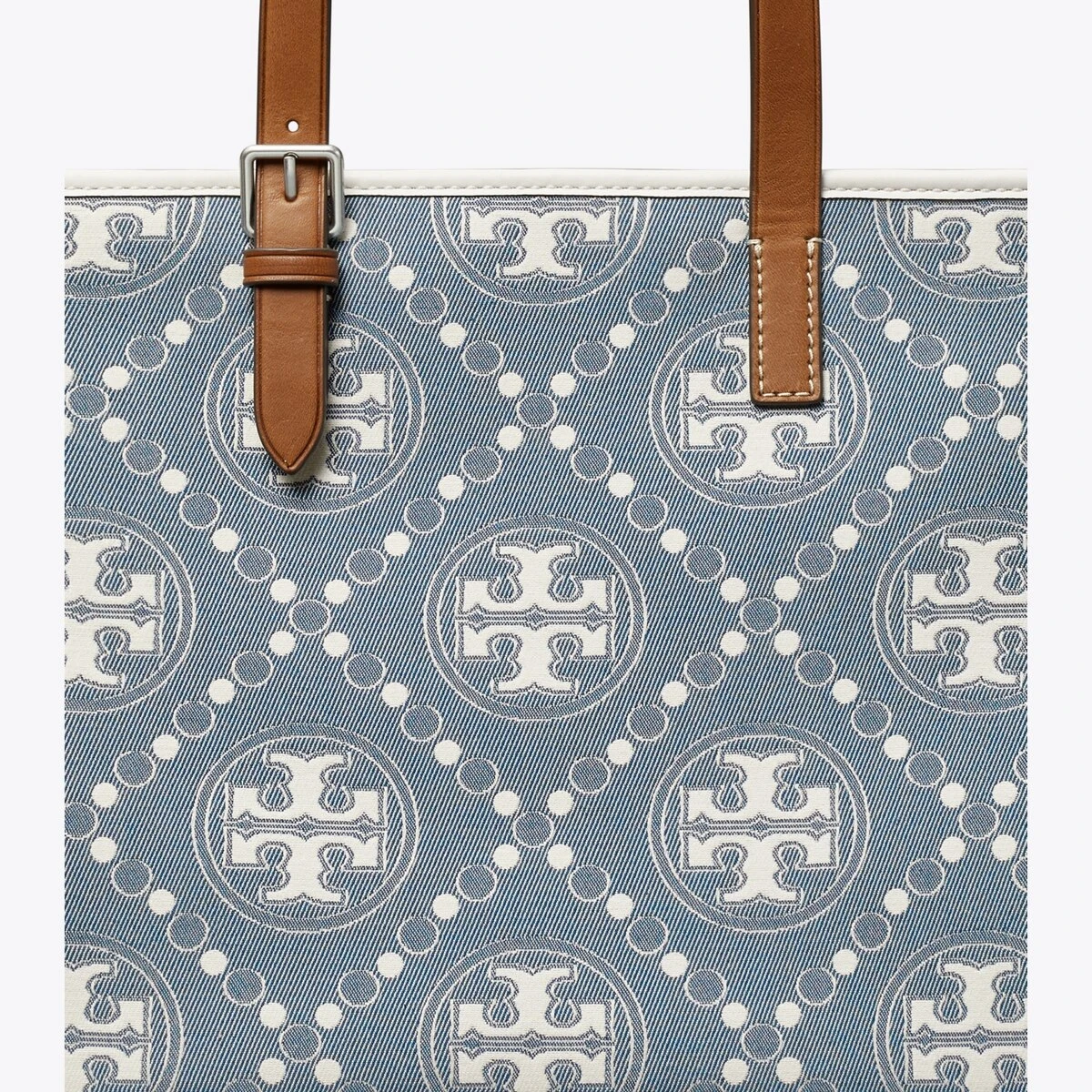 - Denim jacquard; leather trim