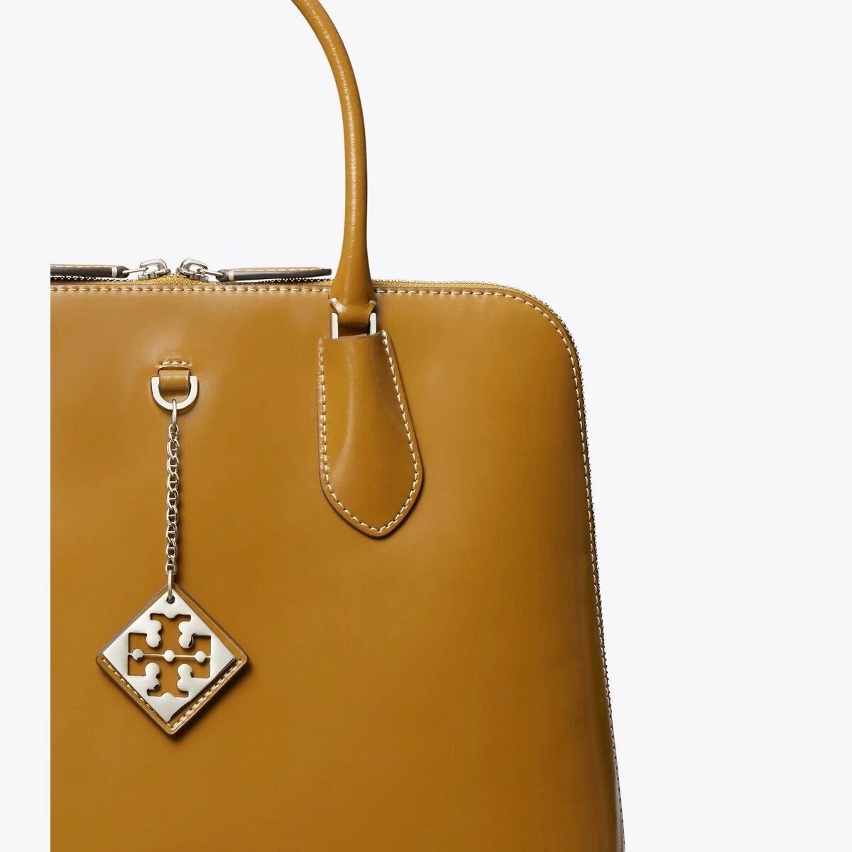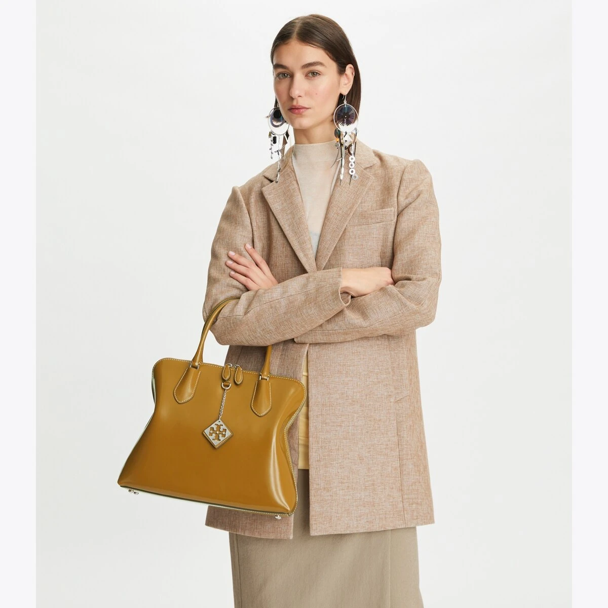 Seen on the SS23 runway. A ladylike take on the classic doctor bag, our Swing Satchel has tubular top handles, a full zipper and graphic white gold hardware. The perfect modern work bag, both roomy and lightweight, with an authoritative elegance.