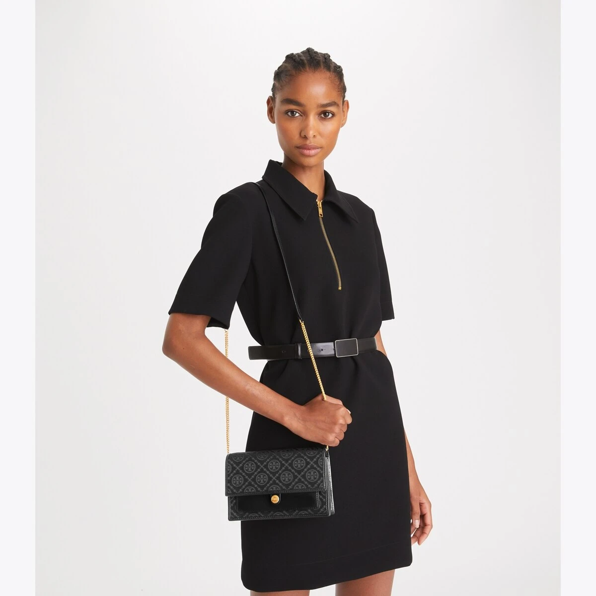 - Adjustable, removable chain strap with 21.5″ (54.5cm) drop: leather shoulder guard for comfort