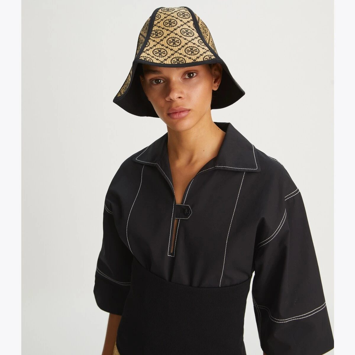 Seen on the Spring/Summer 2022 runway, our 1950s-style lampshade hat is meticulously woven in natural raffia. Trimmed in fine leather, it has a drawstring cord that adjusts with a brass Double T toggle. The angled brim protects your face and neck from the sun. Every detail is considered, with special attention to function and versatility.