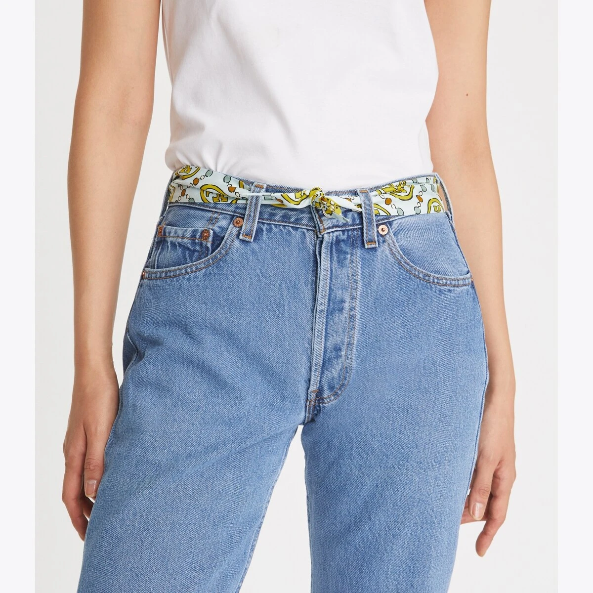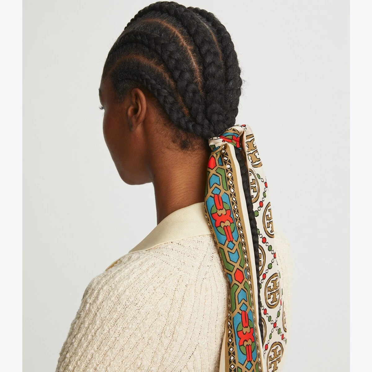 Crafted in silk twill, each side of the ribbon tie features graphic hand-painted designs. A versatile accessory, wear it loosely knotted around the neck or as a hair tie or headband, or add it to a handbag.